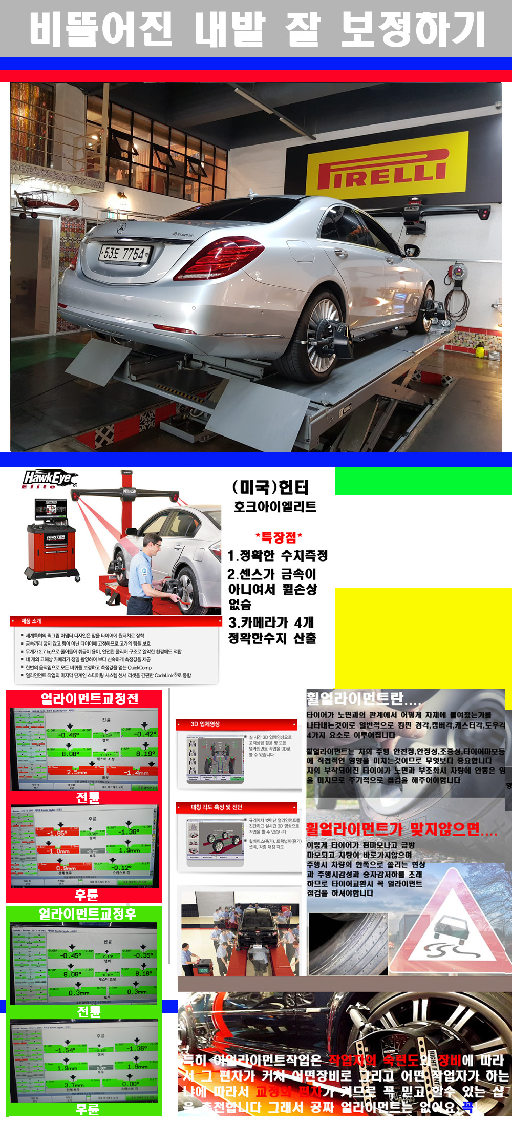 자사는 얼라이먼트정렬시 교정전 교정후를 구분하여 고객님께 직접 이수치값을 확인시켜드리고 작업을 하며 이후 각각의 특성을 가진 타이어들에 대해서 설명 및 관리요령 운전요령 같이 설명해드리고 있습니다