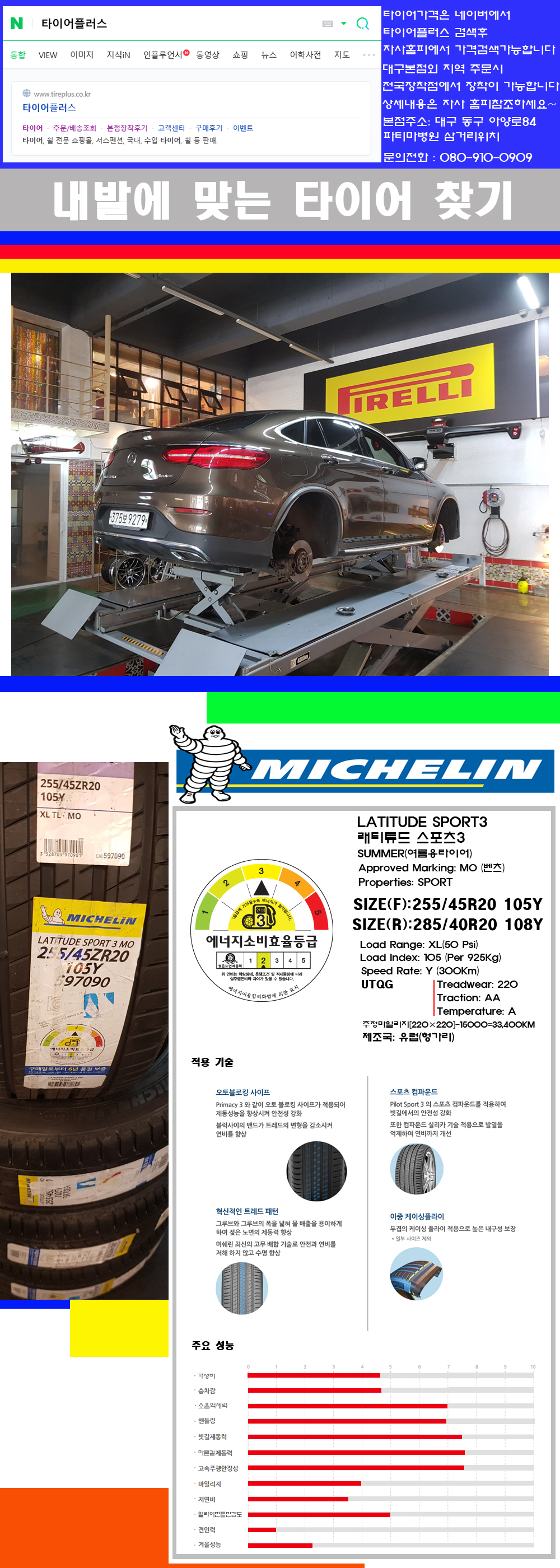 [2554520][2754020]벤츠GLC 미쉐린타이어 래티튜드 스포츠3 255/45R20 285/40R20 |