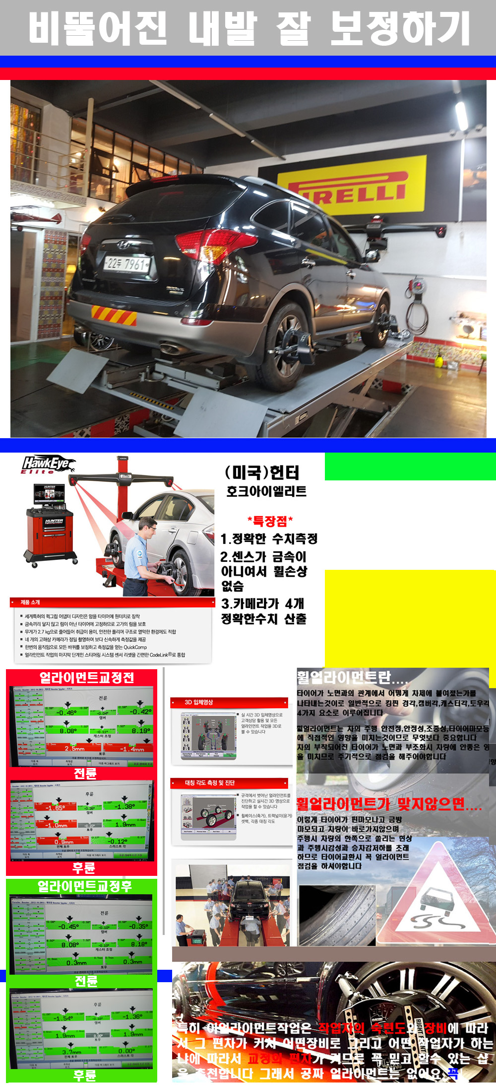 이후 미국 헌터사 호크아이엘리트 장비로 3D얼라이먼트를 진행했습니다