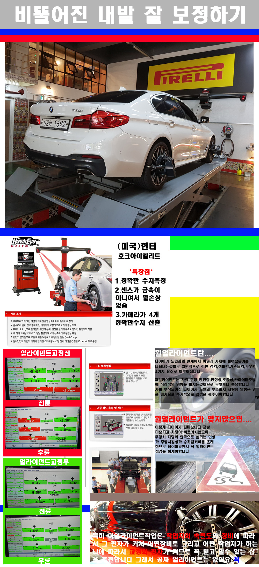 이후 미국 헌터사 호크아이엘리트 장비로 3D얼라이먼트를 진행했습니다