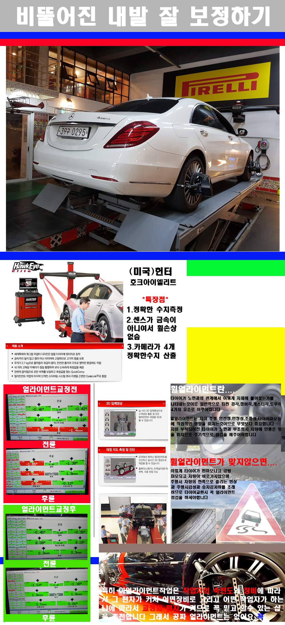 이후 미국 헌터사 호크아이엘리트 장비로 3D얼라이먼트를 진행했습니다