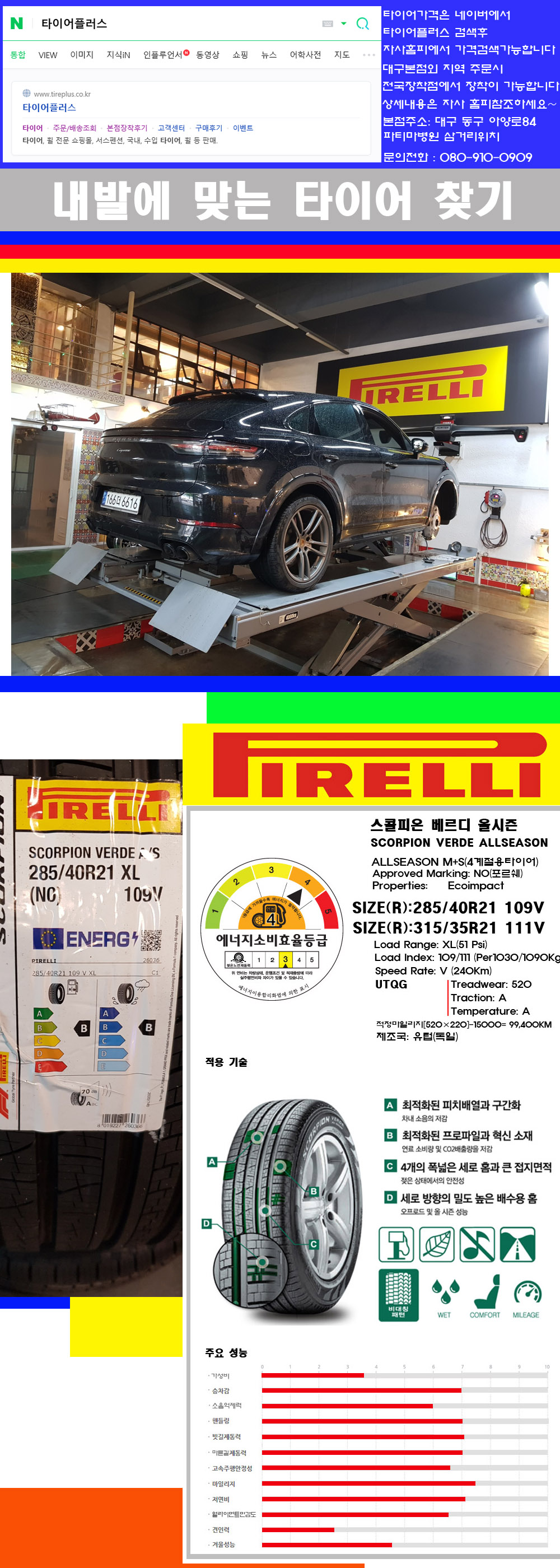 [2854021][3153521]포르쉐카이엔 피렐리타이어 베르디 올시즌 285/40R21 315/35R21 |
