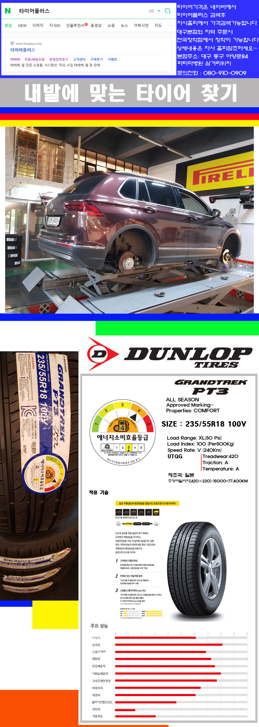 [2355518]폭스바겐티구안 던롭타이어 그랜드트렉 PT3 235/55R18 |