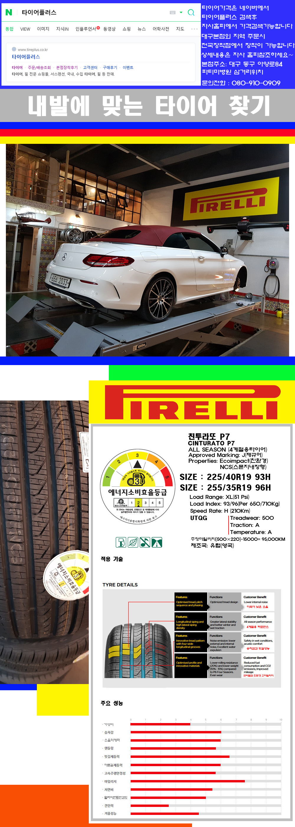 | [2254019][2553519]벤츠C200 피렐리타이어 친투라또P7 올시즌 225/40R19 255/35R19 | |||