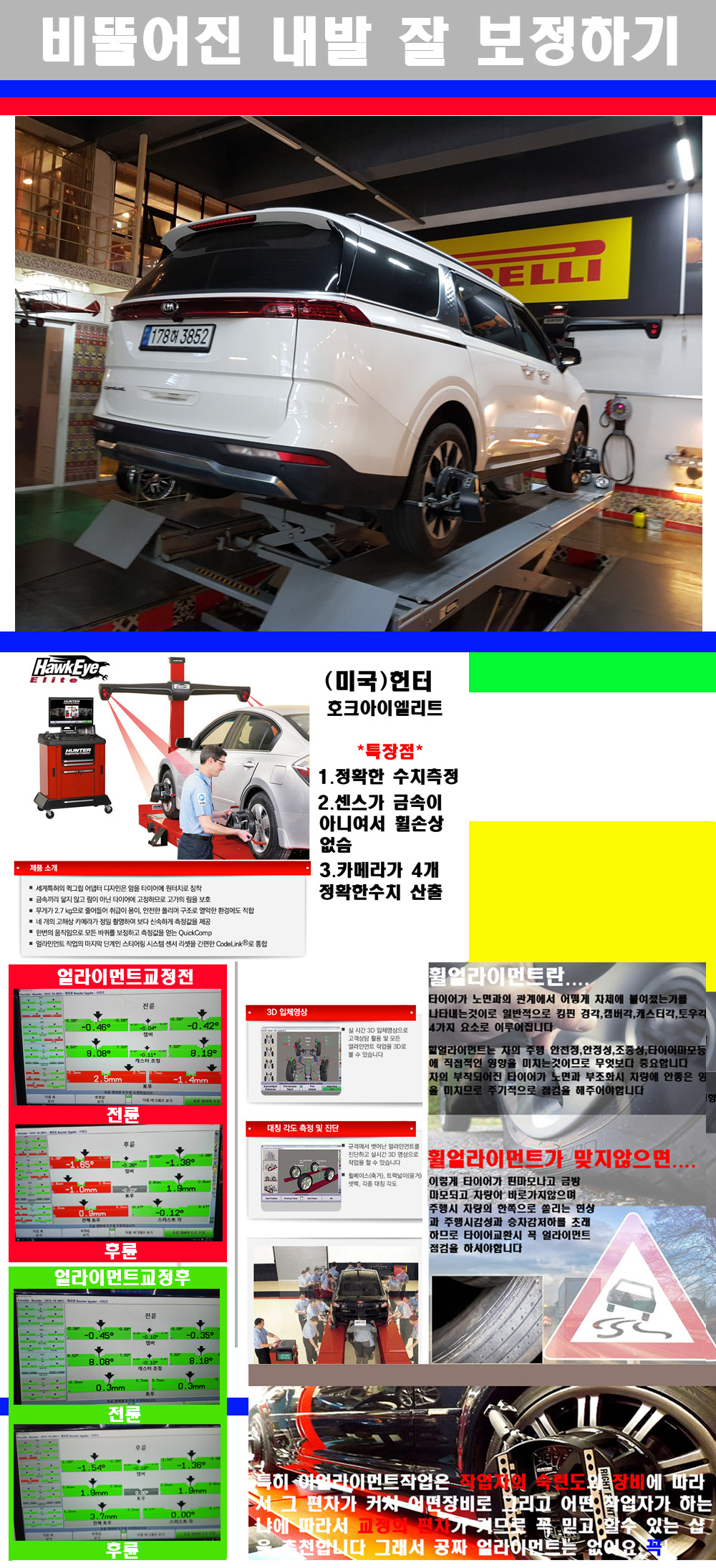 이후 미국 헌터사 호크아이엘리트 장비로 3D얼라이먼트를 진행했습니다