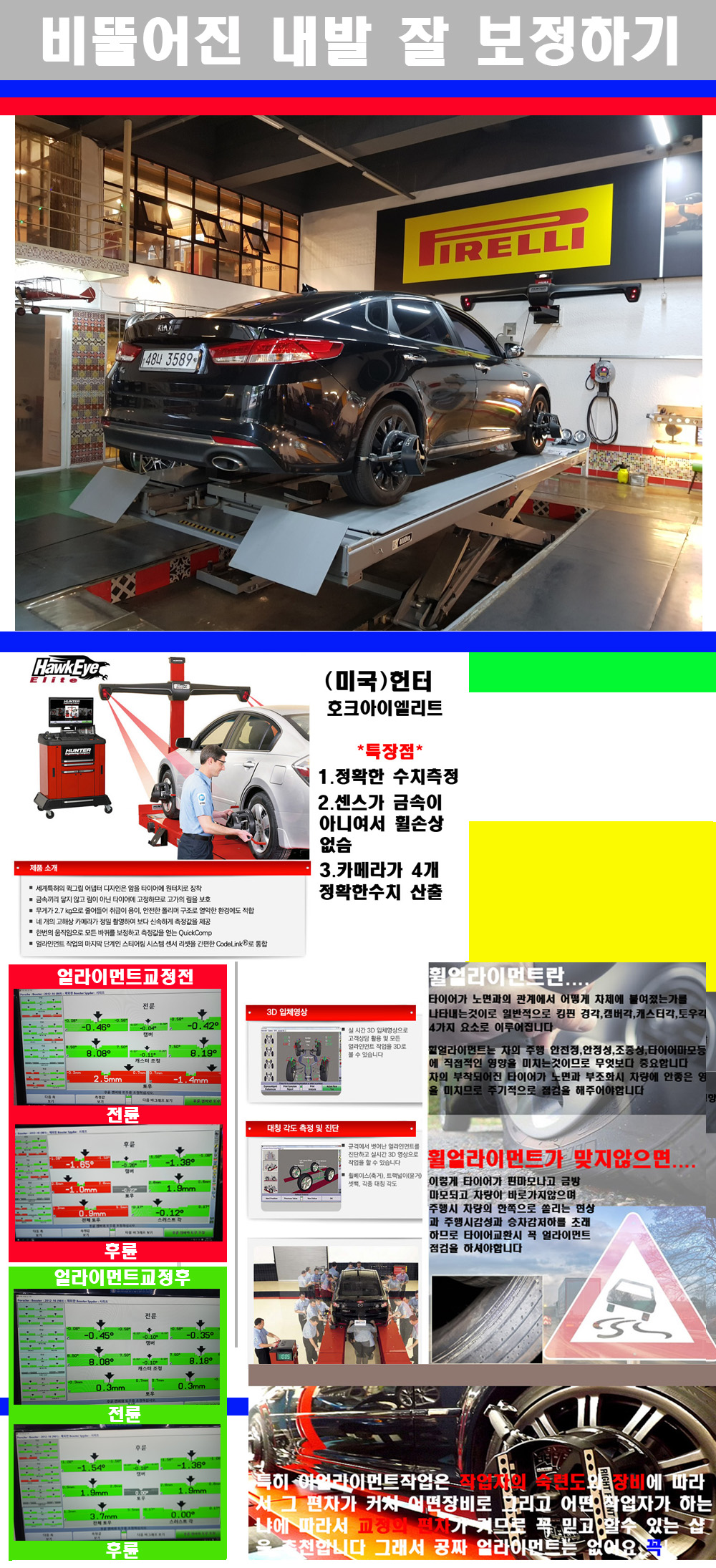 이후 미국 헌터사 호크아이엘리트 장비로 3D얼라이먼트를 진행했습니다
