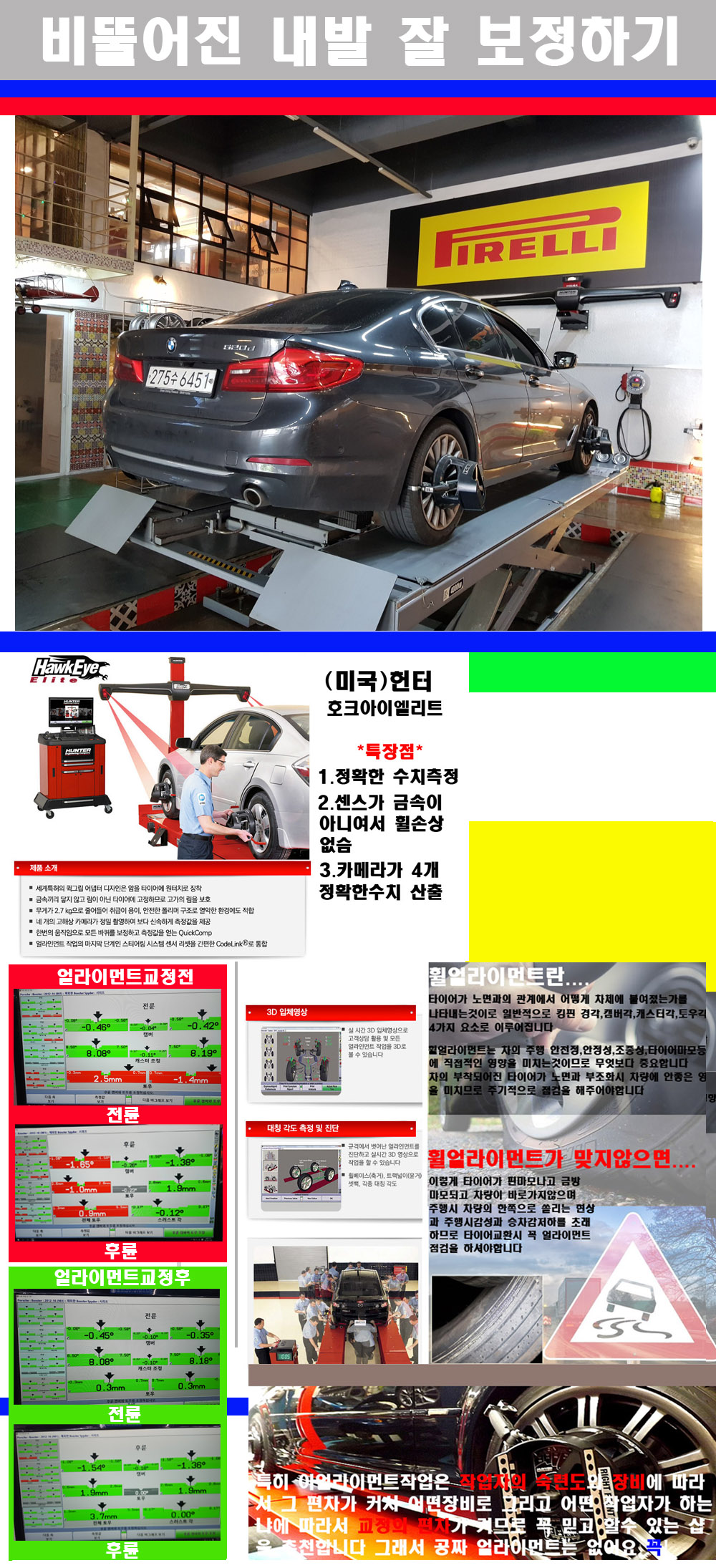 이후 미국 헌터사 호크아이엘리트 장비로 3D얼라이먼트를 진행했습니다