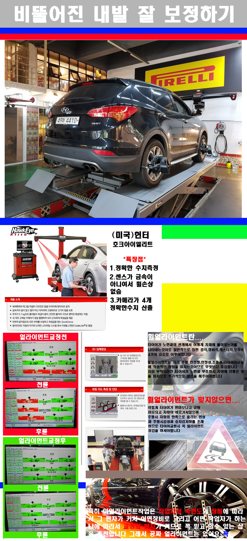 이후 미국 헌터사 호크아이엘리트 장비로 3D얼라이먼트를 진행했습니다