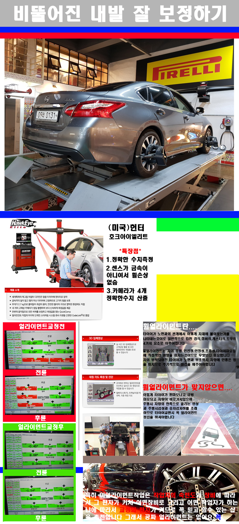 이후 미국 헌터사 호크아이엘리트 장비로 3D얼라이먼트를 진행했습니다