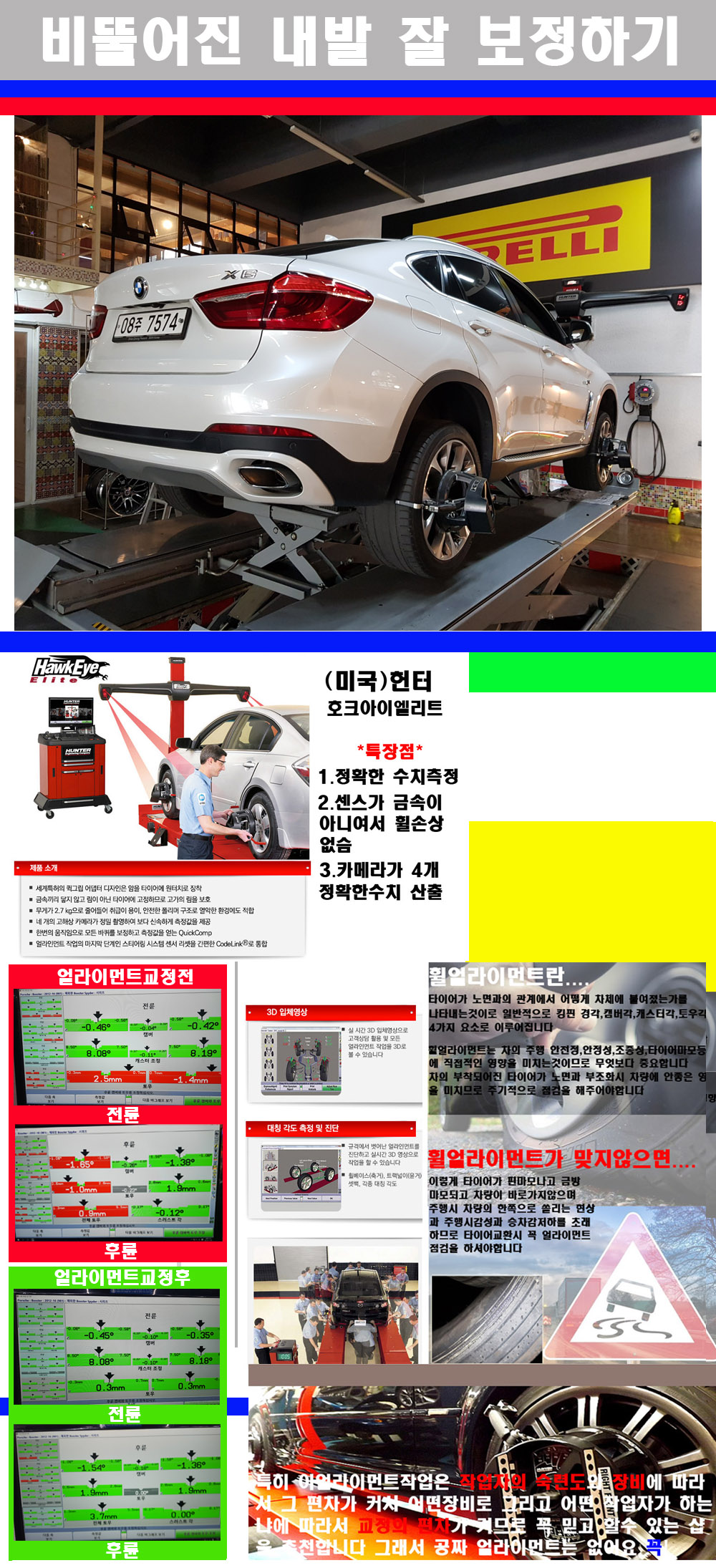 이후 미국 헌터사 호크아이엘리트 장비로 3D얼라이먼트를 진행했습니다