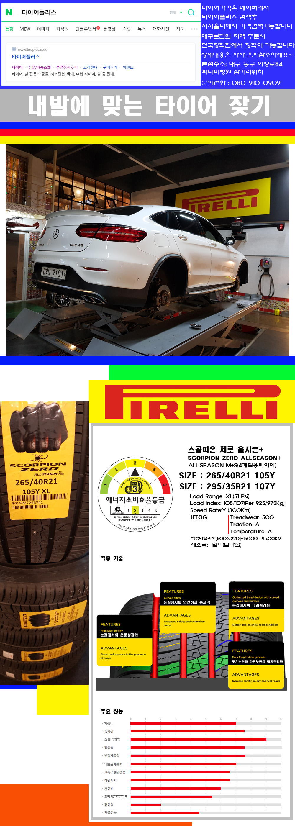 | [2654021][2953521]벤츠GLC43AMG 피렐리타이어 스콜피온 제로올시즌 265/40R21 295/35R21 | |||