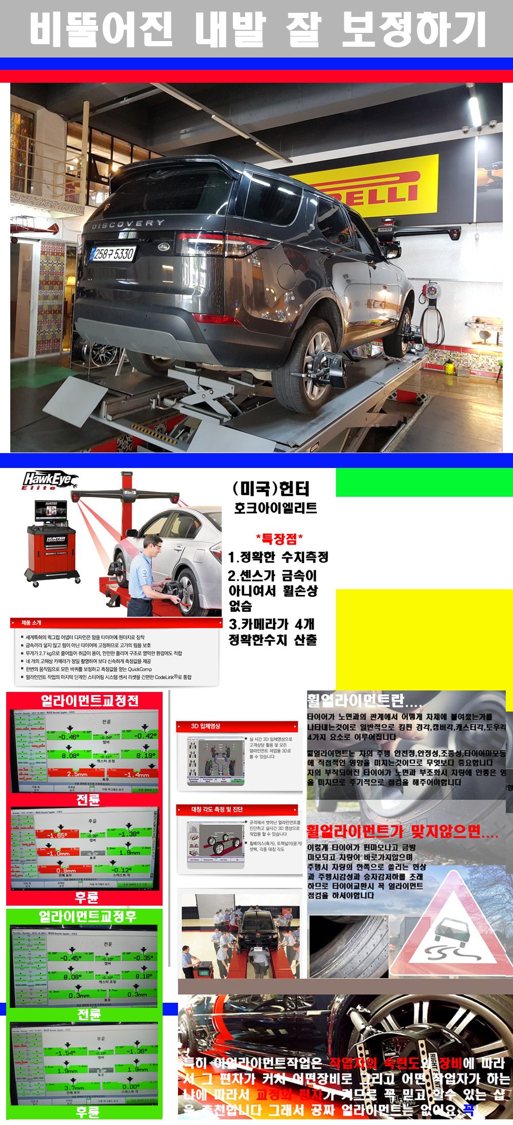 이후 미국 헌터사 호크아이엘리트 장비로 3D얼라이먼트를 진행했습니다