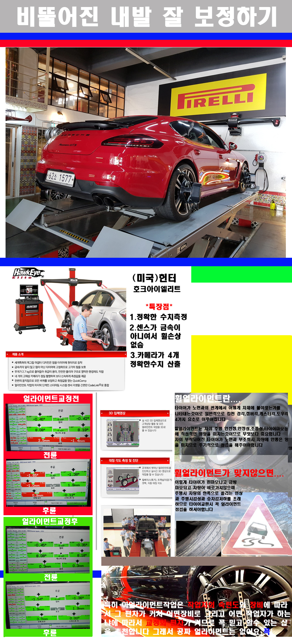 이후 미국 헌터사 호크아이엘리트 장비로 3D얼라이먼트를 진행했습니다