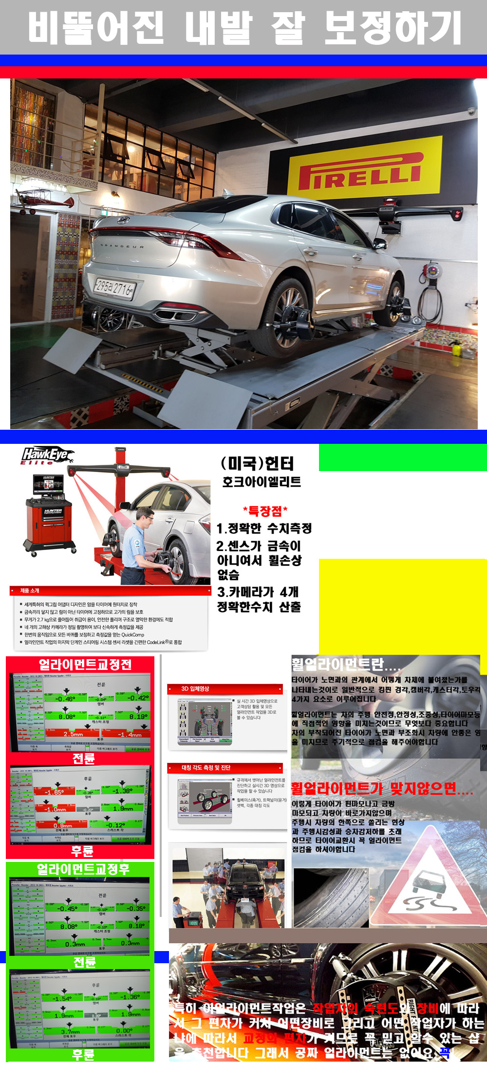 이후 미국 헌터사 호크아이엘리트 장비로 3D얼라이먼트를 진행했습니다