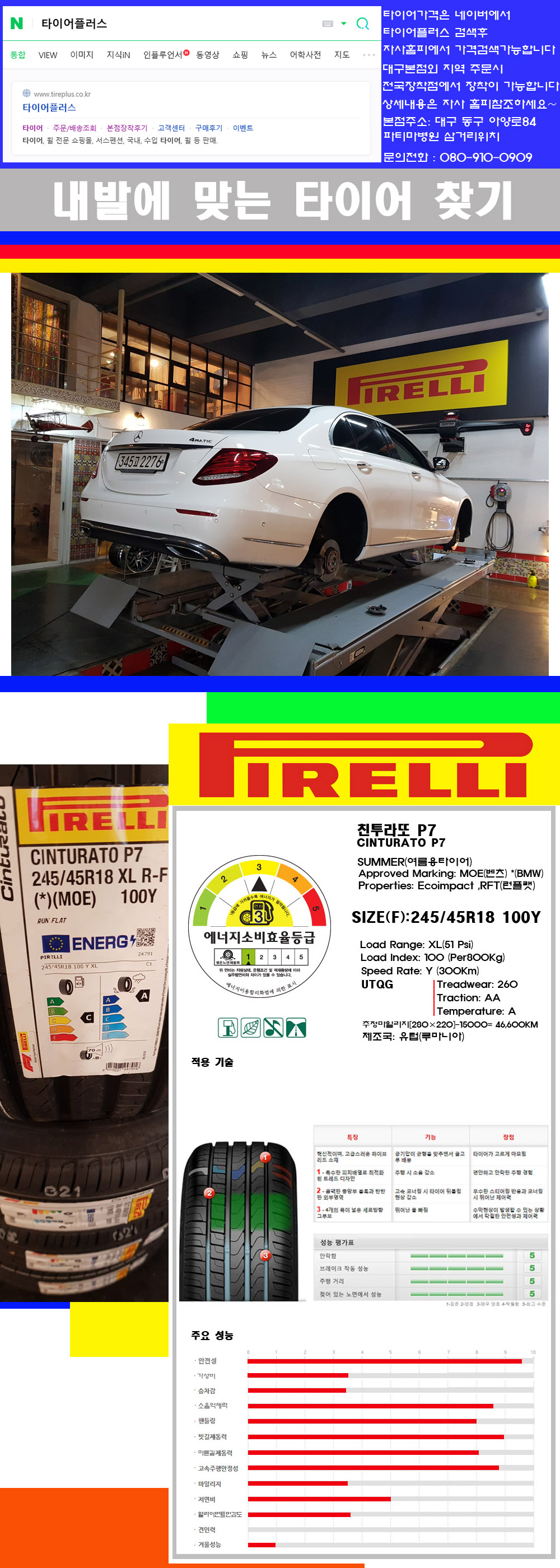 [2454518]벤츠E300 피렐리타이어 친투라또P7 RFT (순정품) 245/45R18 |