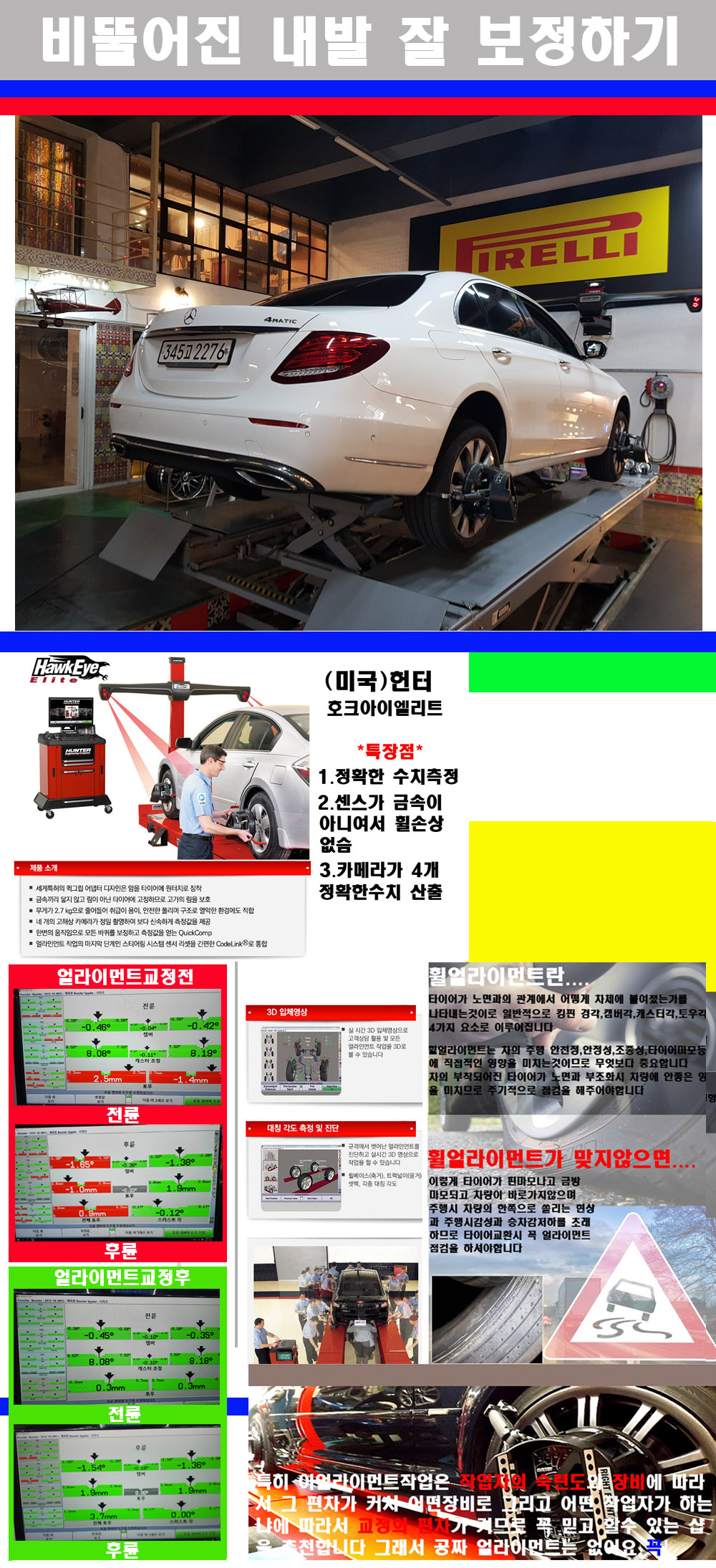 자사는 얼라이먼트정렬시 교정전 교정후를 구분하여 고객님께 직접 이수치값을 확인시켜드리고 작업을 하며 이후 각각의 특성을 가진 타이어들에 대해서 설명 및 관리요령 운전요령 같이 설명해드리고 있습니다