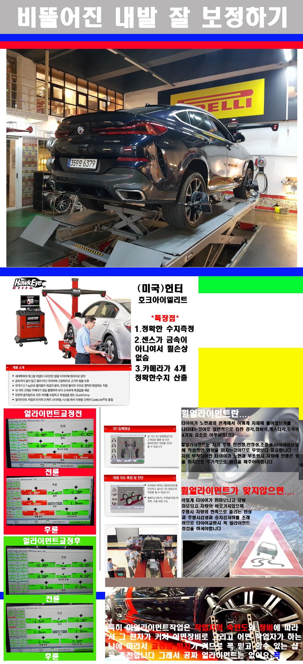 이후 미국 헌터사 호크아이엘리트 장비로 3D얼라이먼트를 진행했습니다