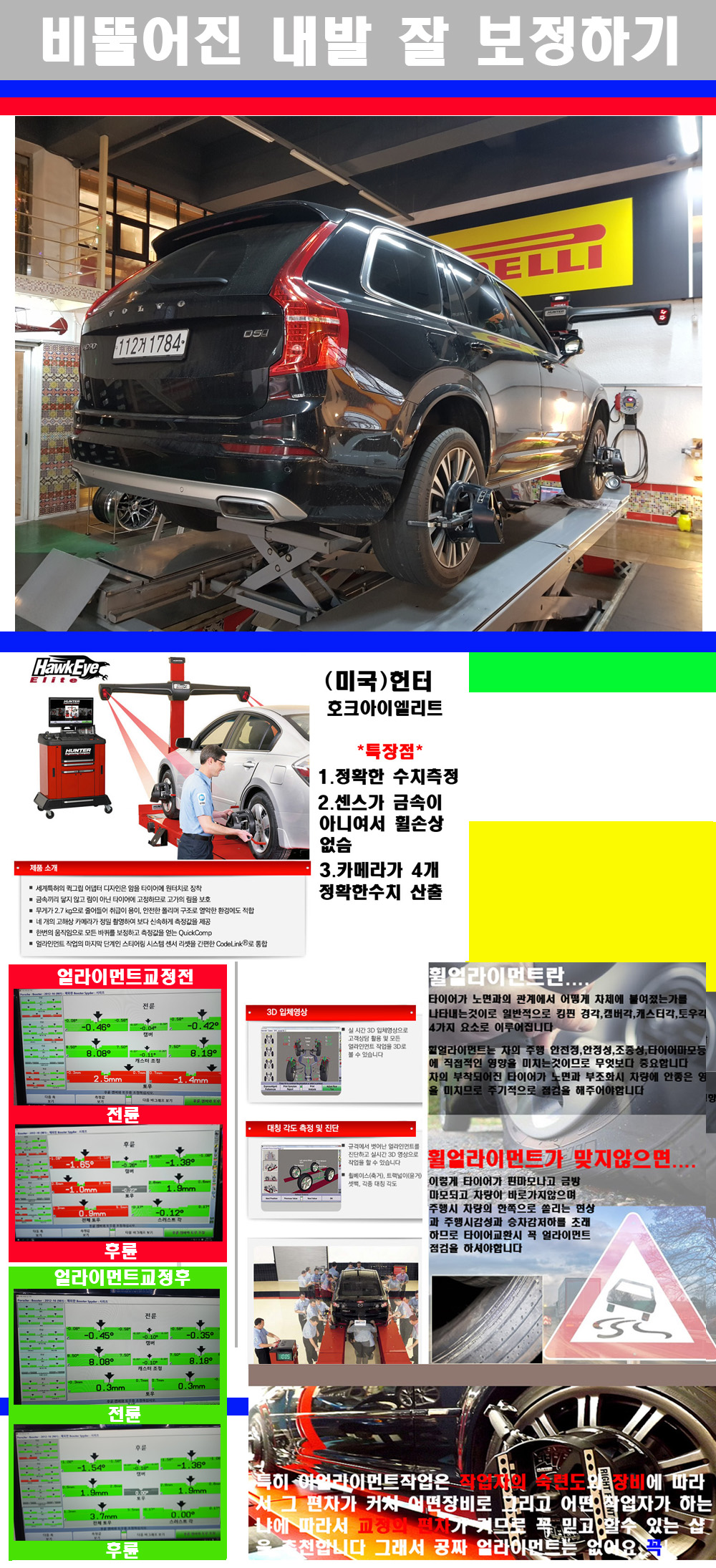 이후 미국 헌터사 호크아이엘리트 장비로 3D얼라이먼트를 진행했습니다