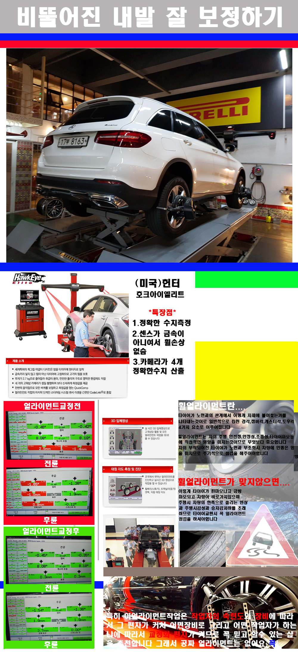 이후 미국 헌터사 호크아이엘리트 장비로 3D얼라이먼트를 진행했습니다