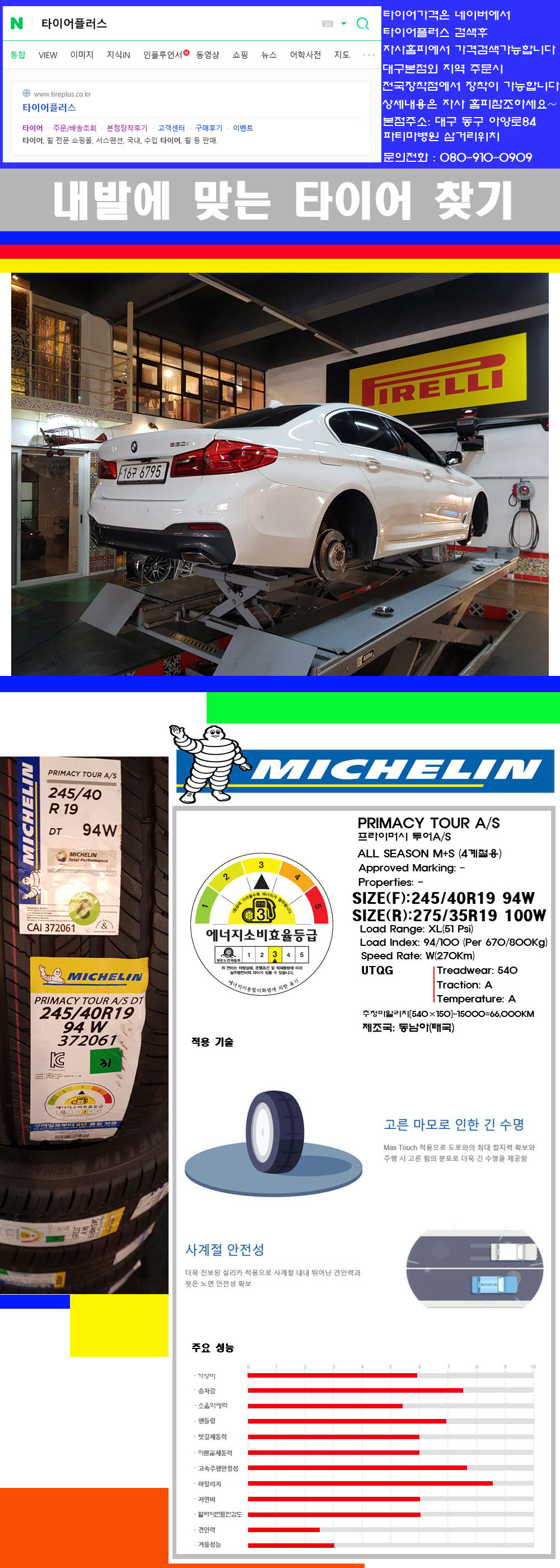 [2454019][2753519]BMW530i 미쉐린타이어 프라이머시 투어AS 245/40R19 275/35R19 |