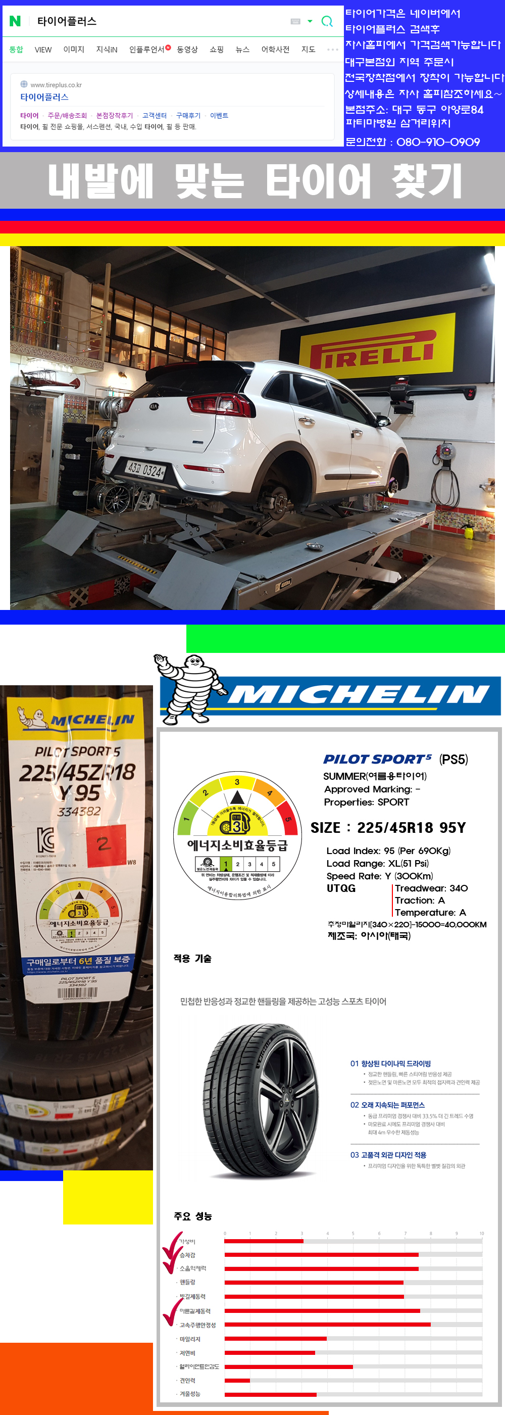 | [2254518]니로 미쉐린타이어 파일롯 스포츠5 (PS5) 225/45R18 | |||