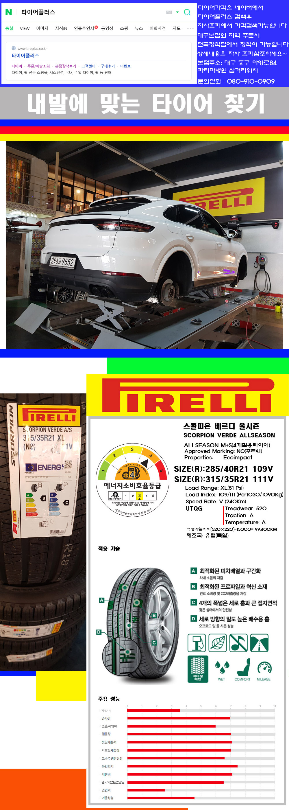[2854021][3153521]포르쉐카이엔 피렐리타이어 베르디 올시즌 (순정품) 285/40R21 315/35R21 |