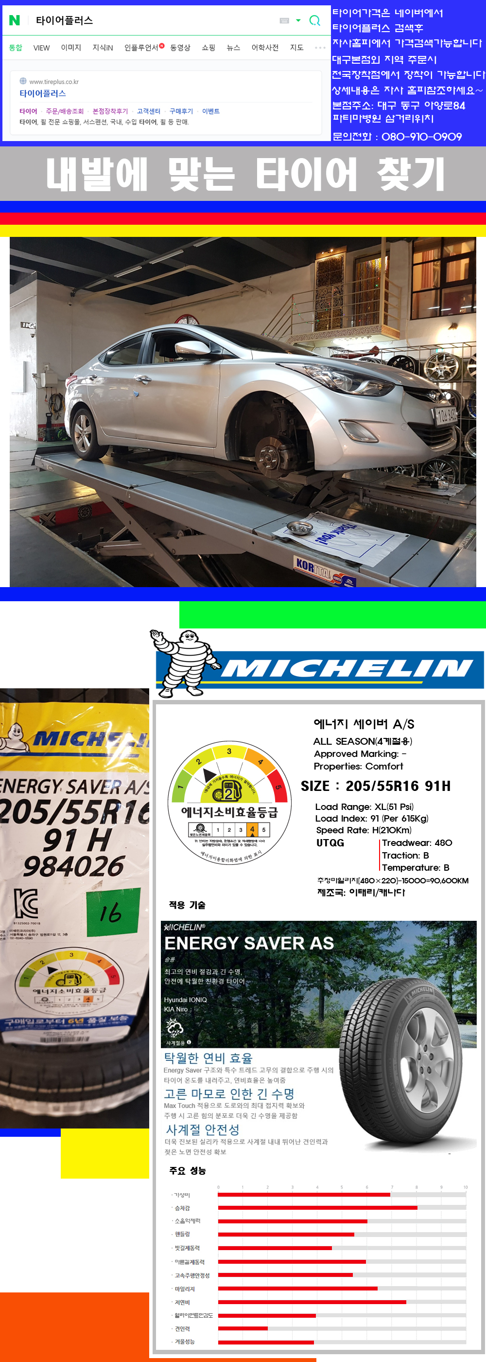 [2055516]아반테MD 미쉐린타이어 에너지 세이버올시즌 205/55R16 |
