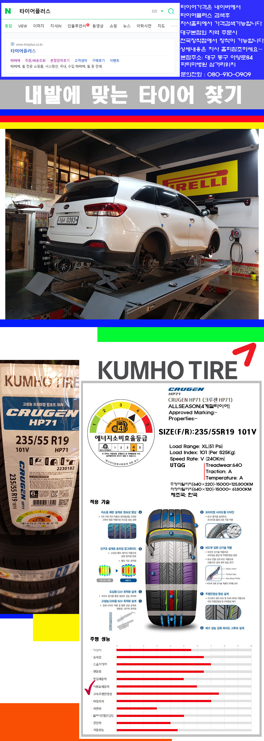 [2355519]쏘렌토 금호타이어 크루젠 HP71 235/55R19 |