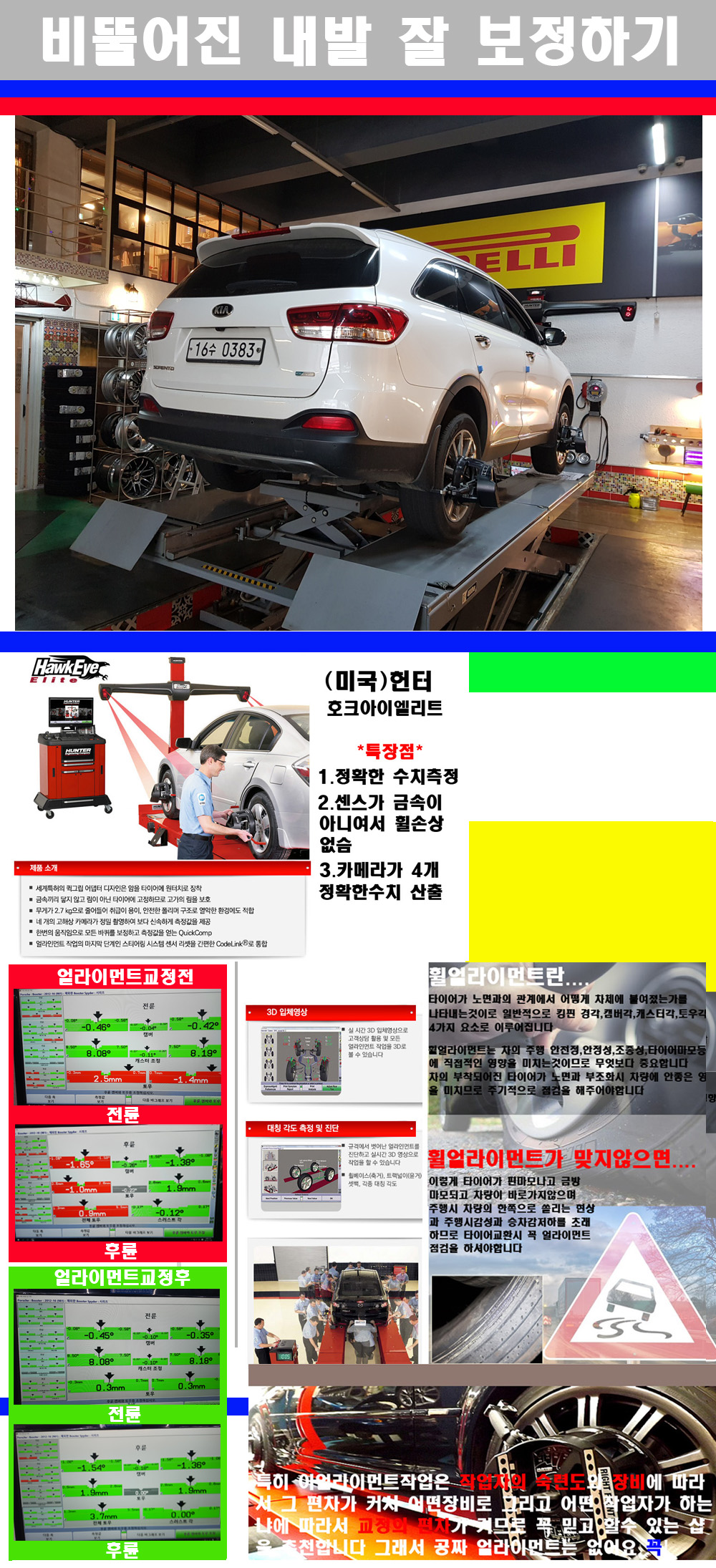 이후 미국 헌터사 호크아이엘리트 장비로 3D얼라이먼트를 진행했습니다