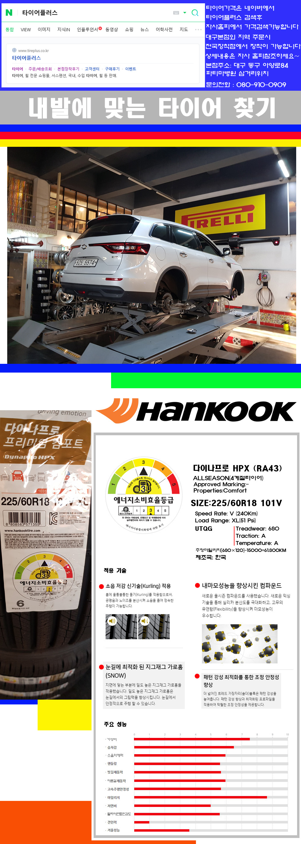 [2256018]QM6 한국타이어 다이나프로 HPX (RA43) 225/60R18 |