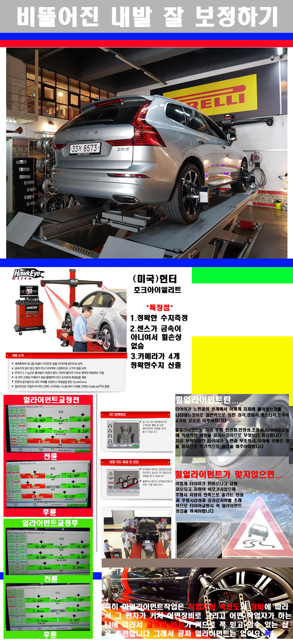 이후 미국 헌터사 호크아이엘리트 장비로 3D얼라이먼트를 진행했습니다