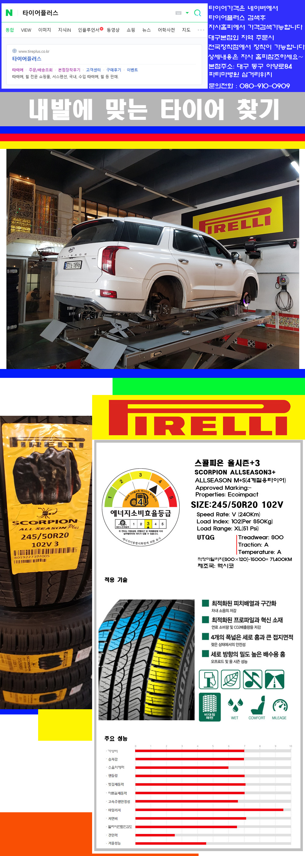 [2455020]팰리세이드 피렐리타이어 스콜피온 올시즌+3 245/50R20 |