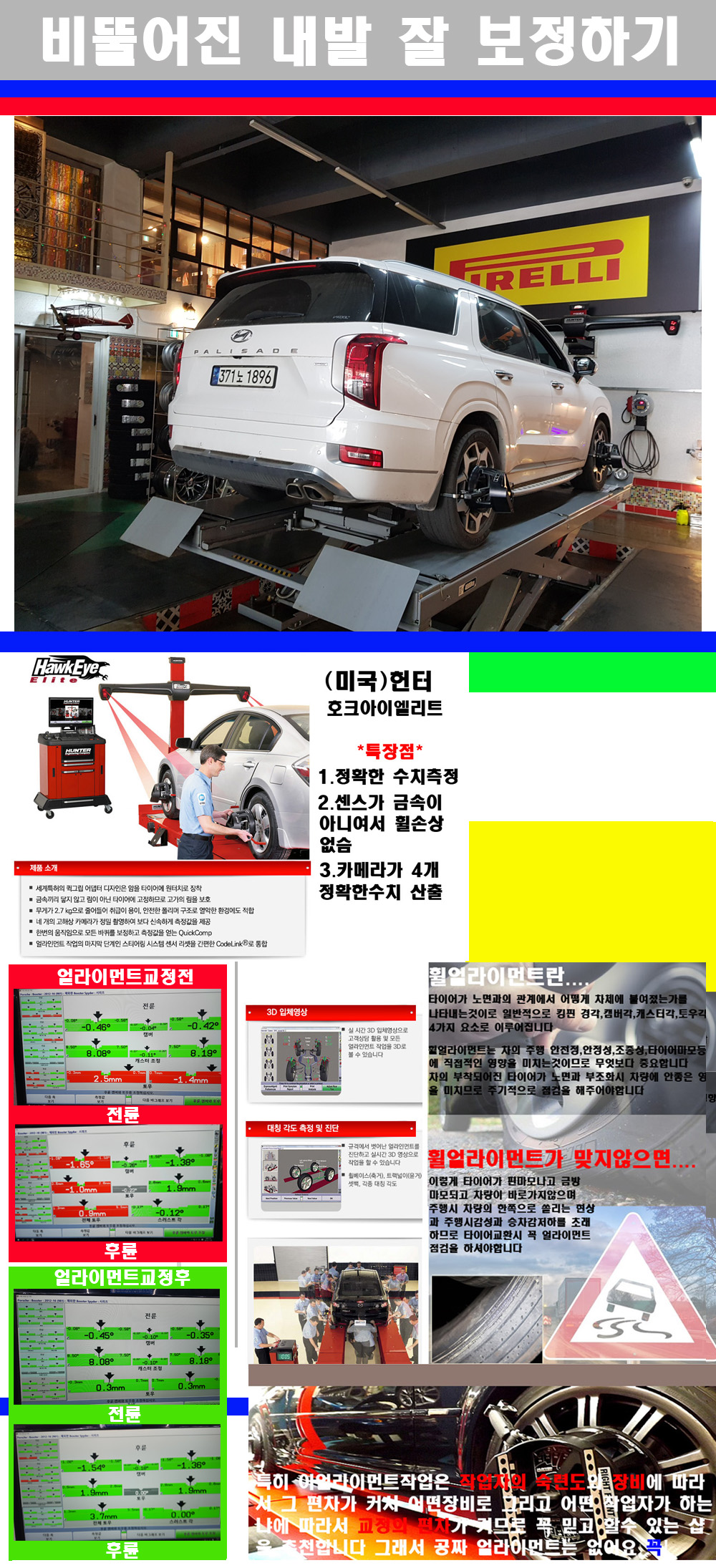 이후 미국 헌터사 호크아이엘리트 장비로 3D얼라이먼트를 진행했습니다