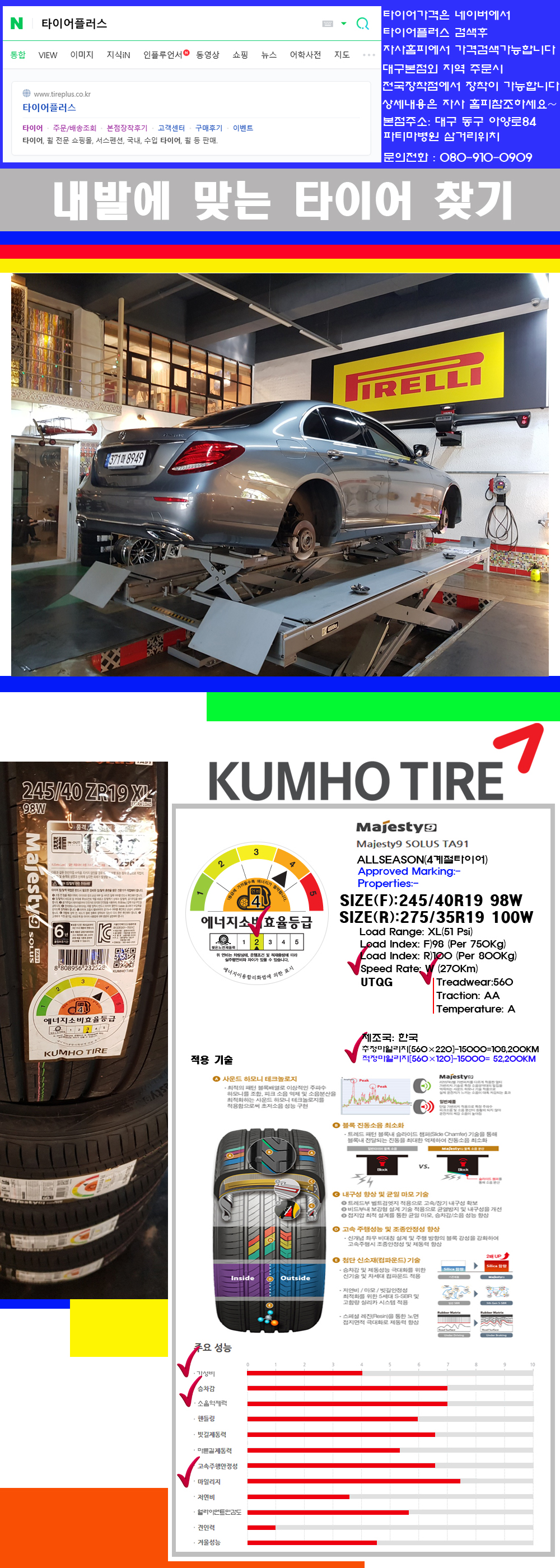 | [2454019][2753519]벤츠E220D 금호타이어 솔루스 마제스티9 (TA91) 245/40R19 275/35R19 | |||