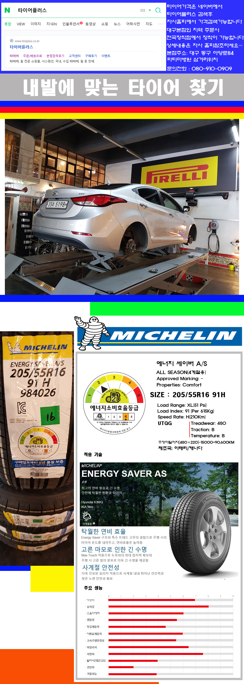 | [2055516]아반테 미쉐린타이어 에너지 세이버AS 205/55R16 | |||
