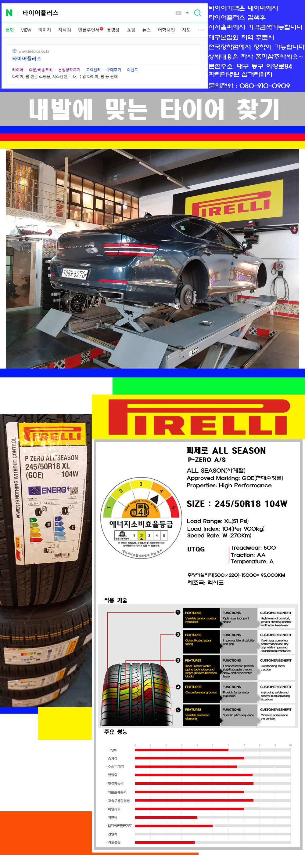 물론 한국 금호 넥센 브리지스톤 미쉐린 콘티넨탈 피렐리 던롭 굳이어 요코하마 등 세계유수의 10대 브랜드타이어만 취급하고 있습니다 타이어매장중 단일규모로는 아마 전국에서 제일 커지않을까 생각합니다 가격도 인터넷 최저가로 장착해 드리고 있습니다 고객님들이 오시면서 너무 고급스러워 가격도 비싸지 않을까 생각하시는데 네이버에서 타이어플러스사이트를 검색해보시면 가격 또한 정말 싸게 판매하고 있구나 하고 생각하실것입니다 물론 장비도 현존하는 장비중 가장 최신장비와 그리고 유럽풍 인테리어의 최고급매장입니다 무엇하나 정품만 취급하며 작업또한 꼼꼼하게 매뉴얼에 따라서 작업을 해드립니다 특히 사장님의 이력이 화려한데 자동차경주 레이스와 미캐닉 국제자격증(A)소지자로서 경험한 풍부한 자동차의 지식을 갖춘분이십니다 특히 자동차잡지사에 타이어에 관한 내용도 기재하신 분이며 타이어회사의 타이어테스트드라이브로도 참여한 분이십니다 제품의 품질이나 제품의 성능등을 장사수단으로 말하지 않고 있는 그대로 말해드리며 특히 사장님 성격상 거짓말을 못하는 성격이여서 믿고 맡겨주시면 후회하지 않을 것입니다 그래서 사장님께서 직접상담해주시고 장착도 해주시는 매장이기에 더 신뢰가 가지 않을까 생각합니다 자사는 인터넷 최저가 기반으로 성장한 회사이기에 가격또한 인터넷 최저가로 장착해 드리고 있습니다 그리고 자사는 고객만족도에서 대상까지 수상한 회사입니다 그래서 한번 저의 매장에서 작업하신 고객님은 아마 다른곳에서는 아마 눈에 차지 않을것이라 생각합니다 가격이면 가격 작업의 완성도면 완성도 그리고 사후 관리까지 최고중에 최고가 되기위해서 노력하는 매장입니다 지금까지 어느 매장에서도 느끼지 못한 감성들을 느끼시기를 바랍니다 감사합니다