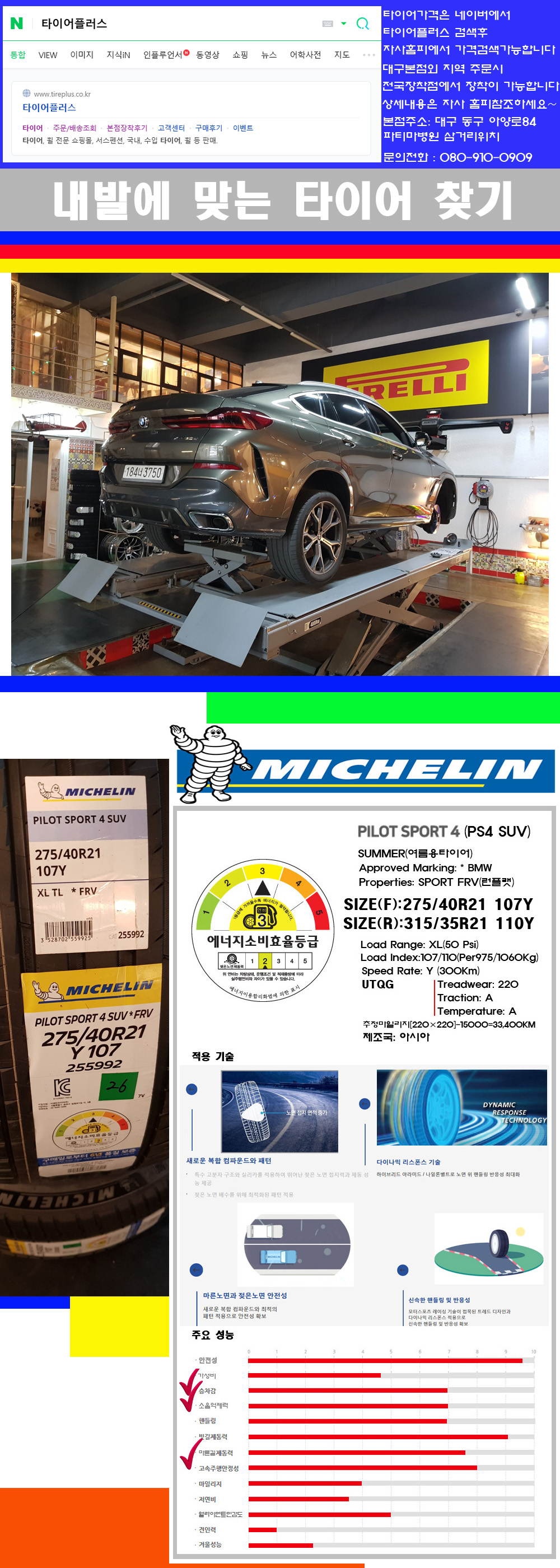 [2754021][3153521]BMW X6 미쉐린타이어 PS4 SUV FRV 275/40R21 315/35R21 |