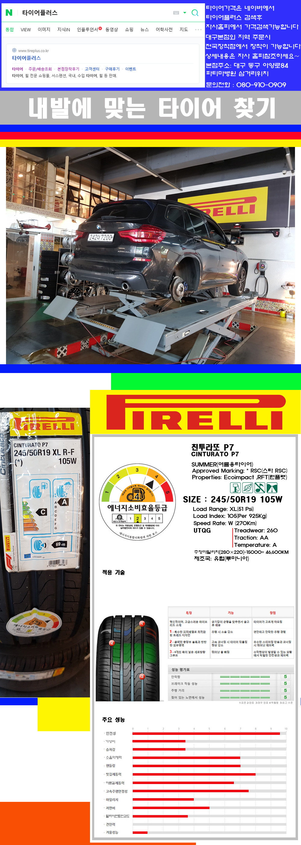 물론 한국 금호 넥센 브리지스톤 미쉐린 콘티넨탈 피렐리 던롭 굳이어 요코하마 등 세계유수의 10대 브랜드타이어만 취급하고 있습니다 타이어매장중 단일규모로는 아마 전국에서 제일 커지않을까 생각합니다 가격도 인터넷 최저가로 장착해 드리고 있습니다 고객님들이 오시면서 너무 고급스러워 가격도 비싸지 않을까 생각하시는데 네이버에서 타이어플러스사이트를 검색해보시면 가격 또한 정말 싸게 판매하고 있구나 하고 생각하실것입니다 물론 장비도 현존하는 장비중 가장 최신장비와 그리고 유럽풍 인테리어의 최고급매장입니다 무엇하나 정품만 취급하며 작업또한 꼼꼼하게 매뉴얼에 따라서 작업을 해드립니다 특히 사장님의 이력이 화려한데 자동차경주 레이스와 미캐닉 국제자격증(A)소지자로서 경험한 풍부한 자동차의 지식을 갖춘분이십니다 특히 자동차잡지사에 타이어에 관한 내용도 기재하신 분이며 타이어회사의 타이어테스트드라이브로도 참여한 분이십니다 제품의 품질이나 제품의 성능등을 장사수단으로 말하지 않고 있는 그대로 말해드리며 특히 사장님 성격상 거짓말을 못하는 성격이여서 믿고 맡겨주시면 후회하지 않을 것입니다 그래서 사장님께서 직접상담해주시고 장착도 해주시는 매장이기에 더 신뢰가 가지 않을까 생각합니다 자사는 인터넷 최저가 기반으로 성장한 회사이기에 가격또한 인터넷 최저가로 장착해 드리고 있습니다 그리고 자사는 고객만족도에서 대상까지 수상한 회사입니다 그래서 한번 저의 매장에서 작업하신 고객님은 아마 다른곳에서는 아마 눈에 차지 않을것이라 생각합니다 가격이면 가격 작업의 완성도면 완성도 그리고 사후 관리까지 최고중에 최고가 되기위해서 노력하는 매장입니다 지금까지 어느 매장에서도 느끼지 못한 감성들을 느끼시기를 바랍니다 감사합니다