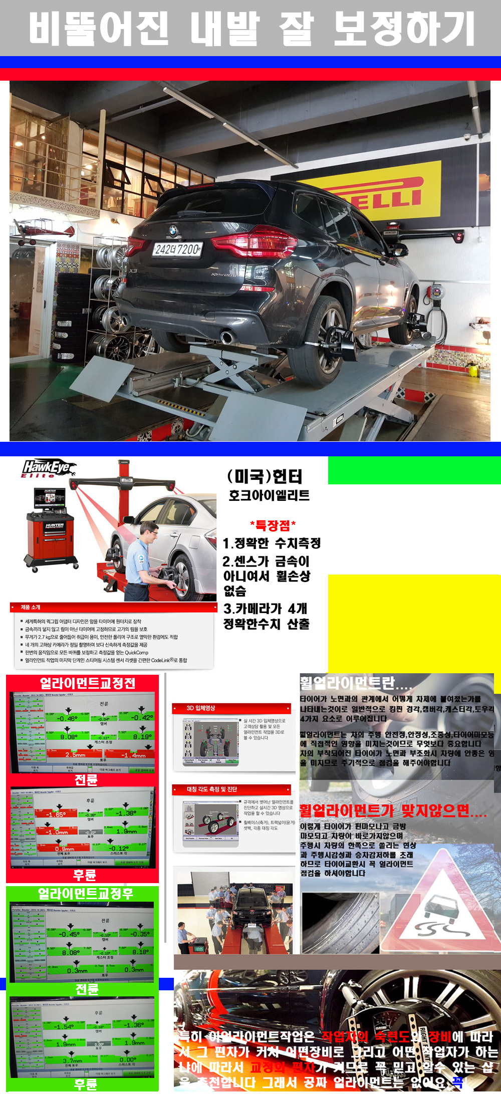 이후 미국 헌터사 호크아이엘리트 장비로 3D얼라이먼트를 진행했습니다