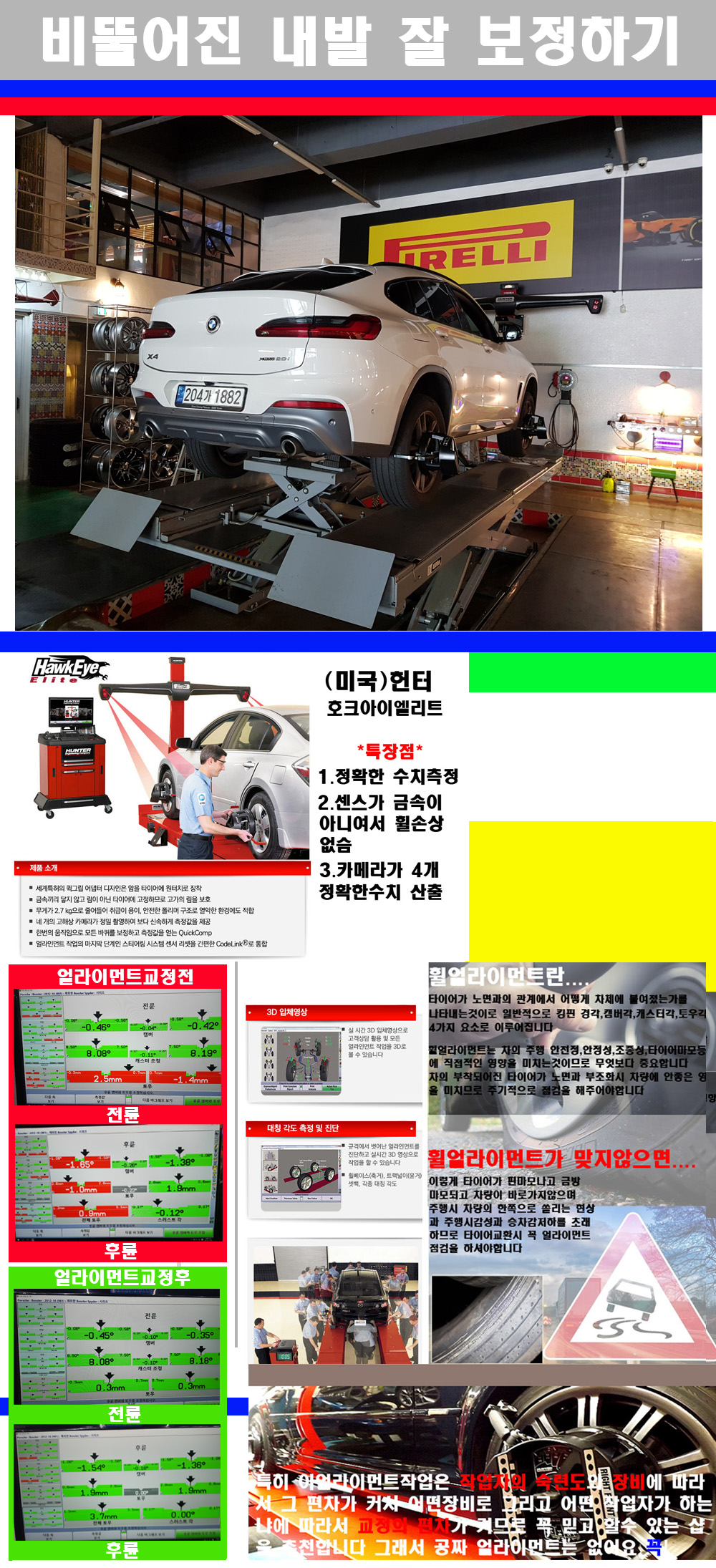 이후 미국 헌터사 호크아이엘리트 장비로 3D얼라이먼트를 진행했습니다