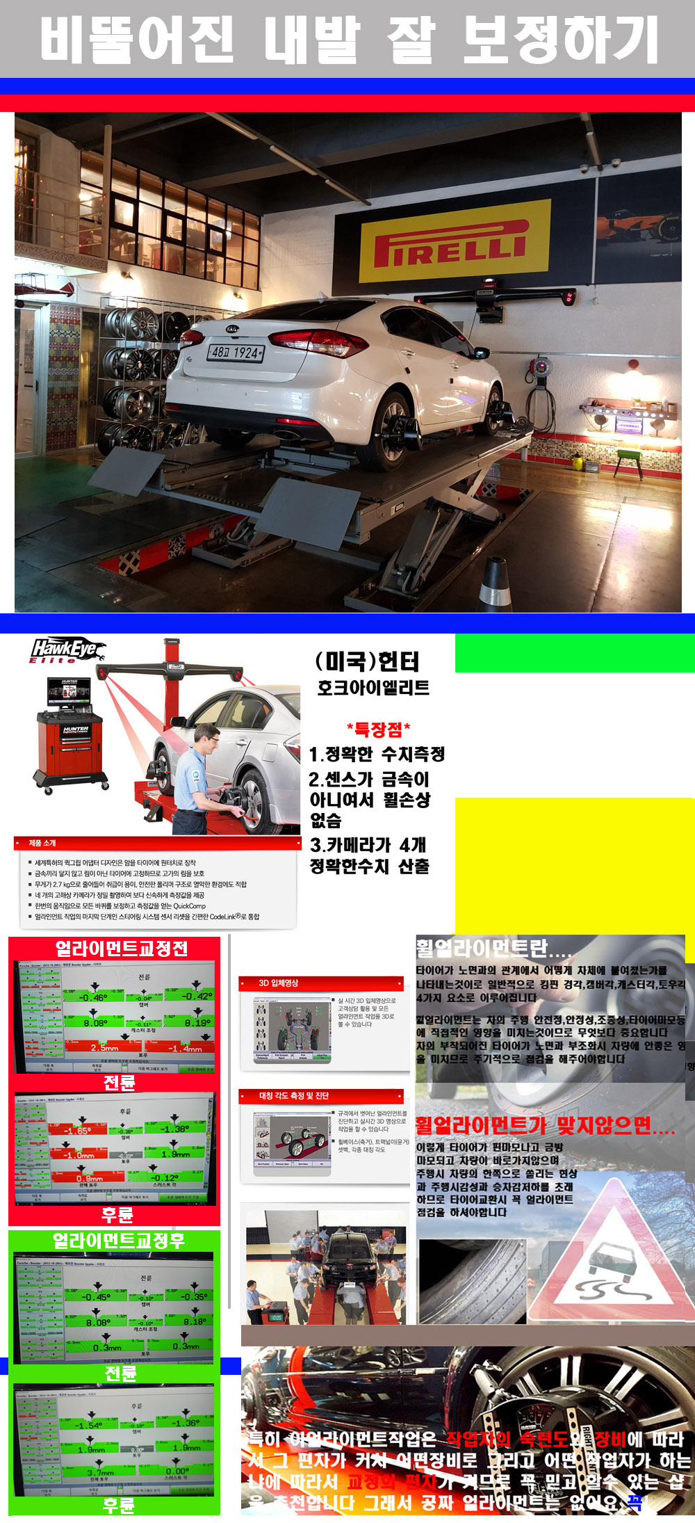 이후 미국 헌터사 GSP9700장비로 고속 및 진동발란스로 더욱더 작업의 정확도와 정밀도를 높였습니다 이장비는 노면에서 올라오는 진동값까지 계산하여 발란스값을 보는 방식으로 진동발란스기는 헌터사GSP9700장비가 유일합니다 이후 역방향으로 60키로의 고속으로 다시 발란스값을 보정하는 방식입니다 그래서 노면에서 올라오는 진동를 잡을수 있으며 특히 타이어의 노면력 측정으로 타이어의 불량여부까지도 검수가 가능한 장비입니다 특히 고속발란스 측정시 타사 발란스기와 틀리게 고속으로 발란스를 보기에 차량이 고속으로 달리는 시뮤레이션 구현이 가능하여 정확한 발란스값을 볼수가 있습니다 그리고 작업자에게는 불필요한 발란스납을 붙이지 않아 미관상으로 좋고 납을 절약하는 고객님에게도윈이고 작업자에게도 윈윈할수 있는 장비입니다 그리고 시중에서 고속진동발란스라고 말하시는 샵들이 많은데 꼭아셔야하는것은 고속발란스는 말그대로 발란스를 볼때 고속으로 돌리기에 60키로 전후 그리고 진동값을 계산하기위해서는 발란스기에 진동롤러가 있어야합니다 그래서 미국헌터사 GSP9700장비가 유일합니다 다른 샵에서 말하는 발란스기는 고속진동발란스기능없는 일반발란스 기기입니다 이점 꼭 아시고 장착하시기를 바랍니다