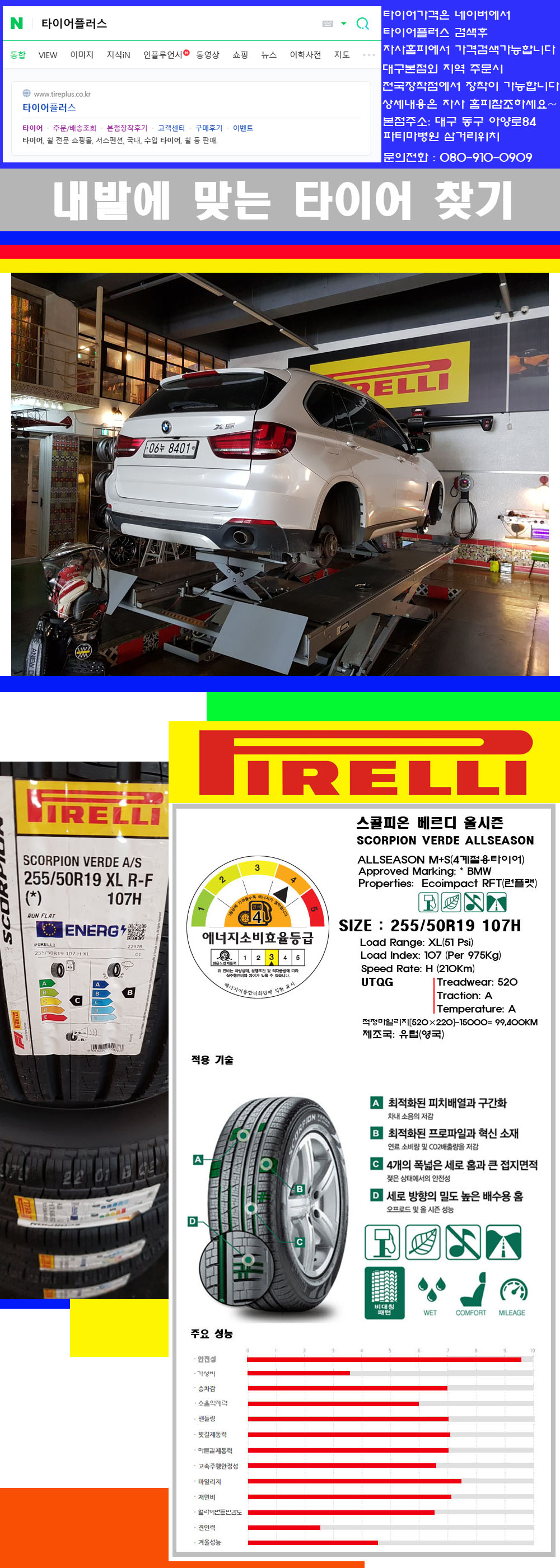 ♥♥♥본점 대구 동구 아양로84 (파티마삼거리 위치) 국산 수입타이어 할인행사중♥♥♥ 타이어플러스 대구본점은 전국에서 가장 규모가 큰매장입니다 물론 자사는 지하층 지상4층건물이며 1층작업장이외는 모두 창고로 사용중인 회사입니다 대구광역시 동구 아양로84(파티마병원 네거리에 위치)그래서 매장으로 바로 오시면 당일에 바로 장착이 가능합니다 물론 한국 금호 넥센 브리지스톤 미쉐린 콘티넨탈 피렐리 던롭 굳이어 요코하마 등 세계유수의 10대 브랜드타이어만 취급하고 있습니다 타이어매장중 단일규모로는 아마 전국에서 제일 커지않을까 생각합니다 가격도 인터넷 최저가로 장착해 드리고 있습니다 고객님들이 오시면서 너무 고급스러워 가격도 비싸지 않을까 생각하시는데 네이버에서 타이어플러스사이트를 검색해보시면 가격 또한 정말 싸게 판매하고 있구나 하고 생각하실것입니다 물론 장비도 현존하는 장비중 가장 최신장비와 그리고 유럽풍 인테리어의 최고급매장입니다 무엇하나 정품만 취급하며 작업또한 꼼꼼하게 매뉴얼에 따라서 작업을 해드립니다 특히 사장님의 이력이 화려한데 자동차경주 레이스와 미캐닉 국제자격증(A)소지자로서 경험한 풍부한 자동차의 지식을 갖춘분이십니다 특히 자동차잡지사에 타이어에 관한 내용도 기재하신 분이며 타이어회사의 타이어테스트드라이브로도 참여한 분이십니다 제품의 품질이나 제품의 성능등을 장사수단으로 말하지 않고 있는 그대로 말해드리며 특히 사장님 성격상 거짓말을 못하는 성격이여서 믿고 맡겨주시면 후회하지 않을 것입니다 그래서 사장님께서 직접상담해주시고 장착도 해주시는 매장이기에 더 신뢰가 가지 않을까 생각합니다 자사는 인터넷 최저가 기반으로 성장한 회사이기에 가격또한 인터넷 최저가로 장착해 드리고 있습니다 그리고 자사는 고객만족도에서 대상까지 수상한 회사입니다 그래서 한번 저의 매장에서 작업하신 고객님은 아마 다른곳에서는 아마 눈에 차지 않을것이라 생각합니다 가격이면 가격 작업의 완성도면 완성도 그리고 사후 관리까지 최고중에 최고가 되기위해서 노력하는 매장입니다 지금까지 어느 매장에서도 느끼지 못한 감성들을 느끼시기를 바랍니다 감사합니다