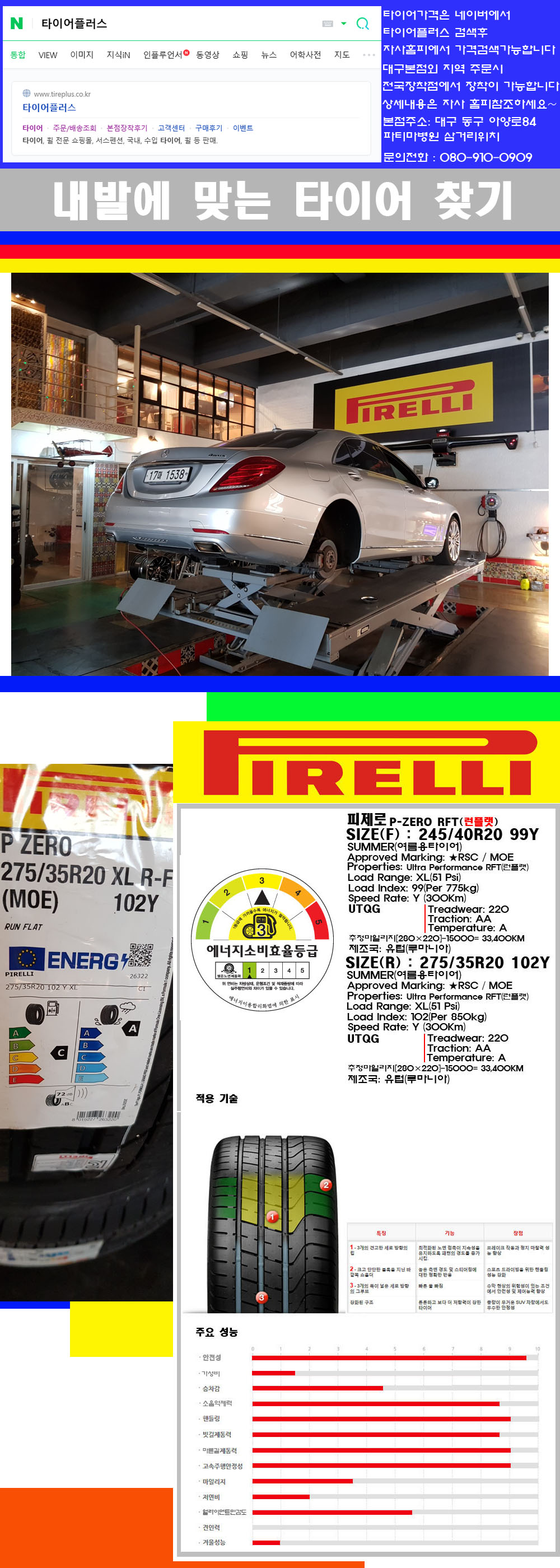 [2454020][2753520]벤츠S500 피렐리타이어 피제로 RFT 245/40R20 275/35R20 |