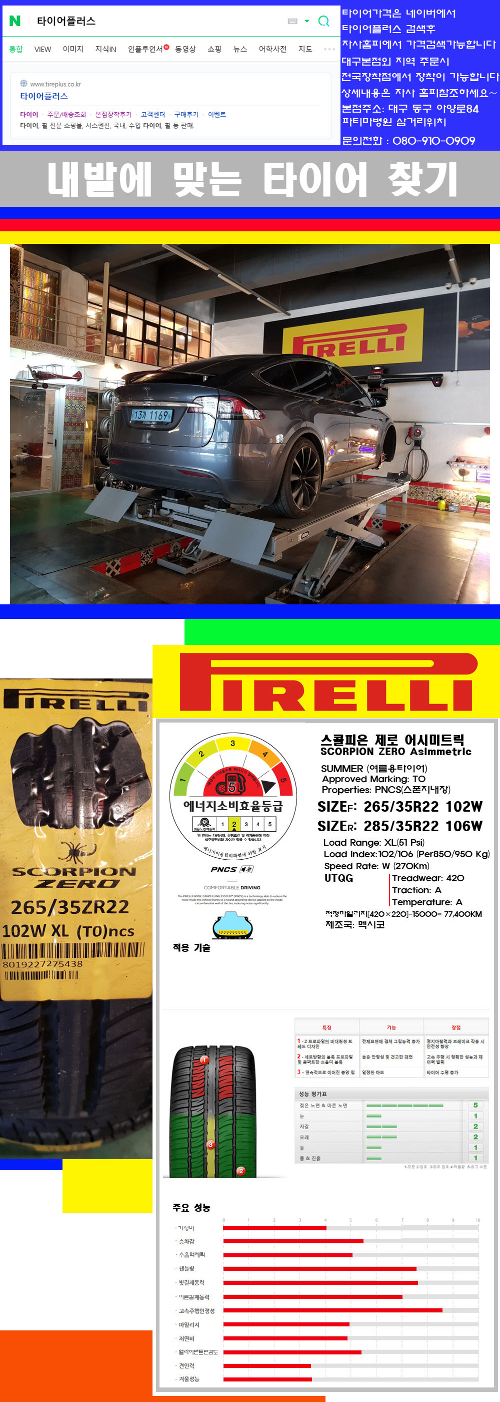♥♥♥본점 대구 동구 아양로84 (파티마삼거리 위치) 국산 수입타이어 할인행사중♥♥♥ 타이어플러스 대구본점은 전국에서 가장 규모가 큰매장입니다 물론 자사는 지하층 지상4층건물이며 1층작업장이외는 모두 창고로 사용중인 회사입니다 대구광역시 동구 아양로84(파티마병원 네거리에 위치)그래서 매장으로 바로 오시면 당일에 바로 장착이 가능합니다 물론 한국 금호 넥센 브리지스톤 미쉐린 콘티넨탈 피렐리 던롭 굳이어 요코하마 등 세계유수의 10대 브랜드타이어만 취급하고 있습니다 타이어매장중 단일규모로는 아마 전국에서 제일 커지않을까 생각합니다 가격도 인터넷 최저가로 장착해 드리고 있습니다 고객님들이 오시면서 너무 고급스러워 가격도 비싸지 않을까 생각하시는데 네이버에서 타이어플러스사이트를 검색해보시면 가격 또한 정말 싸게 판매하고 있구나 하고 생각하실것입니다 물론 장비도 현존하는 장비중 가장 최신장비와 그리고 유럽풍 인테리어의 최고급매장입니다 무엇하나 정품만 취급하며 작업또한 꼼꼼하게 매뉴얼에 따라서 작업을 해드립니다 특히 사장님의 이력이 화려한데 자동차경주 레이스와 미캐닉 국제자격증(A)소지자로서 경험한 풍부한 자동차의 지식을 갖춘분이십니다 특히 자동차잡지사에 타이어에 관한 내용도 기재하신 분이며 타이어회사의 타이어테스트드라이브로도 참여한 분이십니다 제품의 품질이나 제품의 성능등을 장사수단으로 말하지 않고 있는 그대로 말해드리며 특히 사장님 성격상 거짓말을 못하는 성격이여서 믿고 맡겨주시면 후회하지 않을 것입니다 그래서 사장님께서 직접상담해주시고 장착도 해주시는 매장이기에 더 신뢰가 가지 않을까 생각합니다 자사는 인터넷 최저가 기반으로 성장한 회사이기에 가격또한 인터넷 최저가로 장착해 드리고 있습니다 그리고 자사는 고객만족도에서 대상까지 수상한 회사입니다 그래서 한번 저의 매장에서 작업하신 고객님은 아마 다른곳에서는 아마 눈에 차지 않을것이라 생각합니다 가격이면 가격 작업의 완성도면 완성도 그리고 사후 관리까지 최고중에 최고가 되기위해서 노력하는 매장입니다 지금까지 어느 매장에서도 느끼지 못한 감성들을 느끼시기를 바랍니다 감사합니다