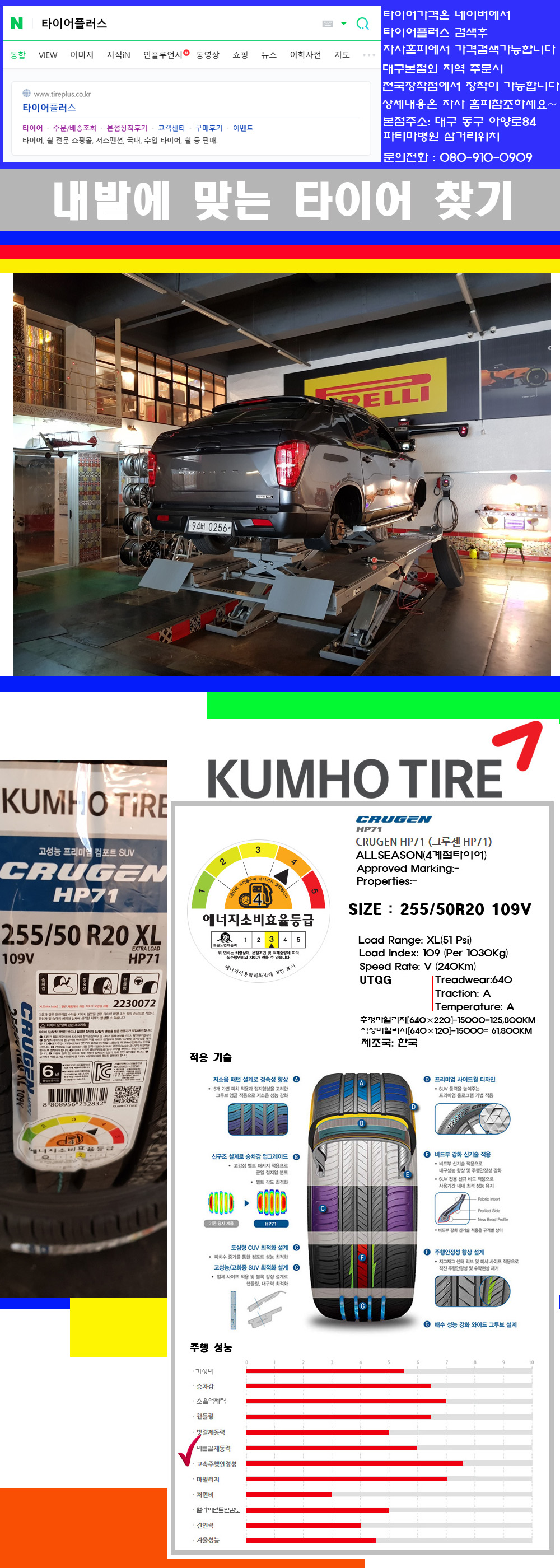 | [2555020]렉스턴스포츠 금호타이어 HP71 255/50R20 | |||