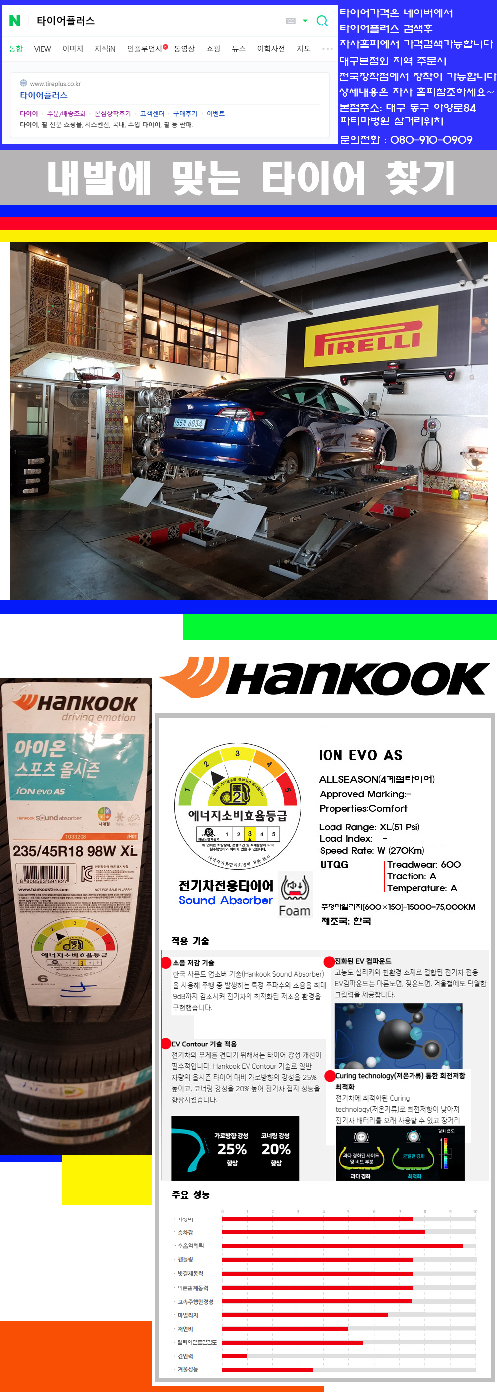 ♥♥♥본점 대구 동구 아양로84 (파티마삼거리 위치) 국산 수입타이어 할인행사중♥♥♥ 타이어플러스 대구본점은 전국에서 가장 규모가 큰매장입니다 물론 자사는 지하층 지상4층건물이며 1층작업장이외는 모두 창고로 사용중인 회사입니다 대구광역시 동구 아양로84(파티마병원 네거리에 위치)그래서 매장으로 바로 오시면 당일에 바로 장착이 가능합니다 물론 한국 금호 넥센 브리지스톤 미쉐린 콘티넨탈 피렐리 던롭 굳이어 요코하마 등 세계유수의 10대 브랜드타이어만 취급하고 있습니다 타이어매장중 단일규모로는 아마 전국에서 제일 커지않을까 생각합니다 가격도 인터넷 최저가로 장착해 드리고 있습니다 고객님들이 오시면서 너무 고급스러워 가격도 비싸지 않을까 생각하시는데 네이버에서 타이어플러스사이트를 검색해보시면 가격 또한 정말 싸게 판매하고 있구나 하고 생각하실것입니다 물론 장비도 현존하는 장비중 가장 최신장비와 그리고 유럽풍 인테리어의 최고급매장입니다 무엇하나 정품만 취급하며 작업또한 꼼꼼하게 매뉴얼에 따라서 작업을 해드립니다 특히 사장님의 이력이 화려한데 자동차경주 레이스와 미캐닉 국제자격증(A)소지자로서 경험한 풍부한 자동차의 지식을 갖춘분이십니다 특히 자동차잡지사에 타이어에 관한 내용도 기재하신 분이며 타이어회사의 타이어테스트드라이브로도 참여한 분이십니다 제품의 품질이나 제품의 성능등을 장사수단으로 말하지 않고 있는 그대로 말해드리며 특히 사장님 성격상 거짓말을 못하는 성격이여서 믿고 맡겨주시면 후회하지 않을 것입니다 그래서 사장님께서 직접상담해주시고 장착도 해주시는 매장이기에 더 신뢰가 가지 않을까 생각합니다 자사는 인터넷 최저가 기반으로 성장한 회사이기에 가격또한 인터넷 최저가로 장착해 드리고 있습니다 그리고 자사는 고객만족도에서 대상까지 수상한 회사입니다 그래서 한번 저의 매장에서 작업하신 고객님은 아마 다른곳에서는 아마 눈에 차지 않을것이라 생각합니다 가격이면 가격 작업의 완성도면 완성도 그리고 사후 관리까지 최고중에 최고가 되기위해서 노력하는 매장입니다 지금까지 어느 매장에서도 느끼지 못한 감성들을 느끼시기를 바랍니다 감사합니다