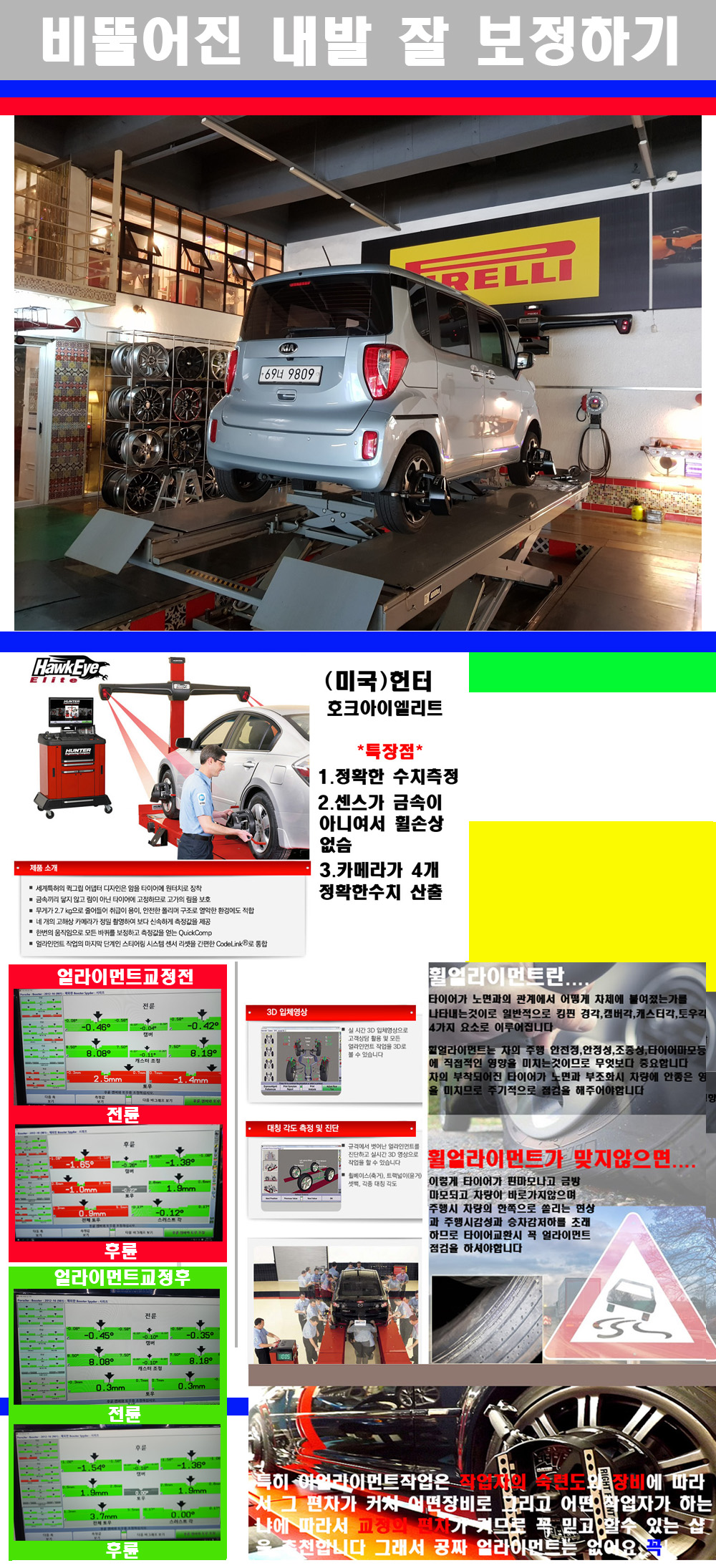이후 미국 헌터사 호크아이엘리트 장비로 3D얼라이먼트를 진행했습니다 이장비는 현존하는 가장 진화된 얼라이먼트장비입니다 특히 4개의 고성능카메라가 장착되어져 있어 실시간으로 오차가 없는 측정값을 구현하며 바퀴당 각 휠센서 클램프가 프라스틱이며 타이어바닦면을 지지하는 방식이여서 휠의 손상이 없는것이 특징입니다 하지만 장비보다 차량의 얼라이먼트를 볼시 작업자의 정성과 그리고 능력과 숙련도가 관견이기에 꼭 휠얼라이먼트를 장사수단으로 하지않는 샵을 권장합니다 자사는 얼라이먼트정렬시 교정전 교정후를 구분하여 고객님께 직접 이수치값을 확인시켜드리고 작업을 하며 이후 각각의 특성을 가진 타이어들에 대해서 설명 및 관리요령 운전요령 같이 설명해드리고 있습니다 이후 타이어와 휠의 정확한 발란스값과 진동값을 보정후 헌터사 호크아이엘리트 3D얼라이먼트장비로 공장에서 처음 출고될시의 팩토리값으로 교정하였습니다 그리고 타이어질소가스주입기로 3번정도 진공상태로 만든후 질소가스를 주입했습니다 질소가스주입시 가장 관견은 순도이기에 이런 여러번의 진공상태후 주입하고 빼주는 과정를 많이 해주어야합니다 질소가스의 주입시 타이어공기압의 저하가 덜하고 화합물질이 반응을 하지않아 소음전파력과 그리고 타이어안쪽에 수분을 발생하지않으며 타이어안쪽에서의 공기압이 팽창하지않아 타이어에 스트레스를 덜주게 됩니다 하지만 이부분도 공기속에 질소가 80%정도 존재하기에 미미한 차이이지만 질소순도를 높이고 주행시 좋은 점이 확연히 많기에 질소주입을 해드리고 있습니다 특히 고성능타이어나 하중값을 많이 주는 타이어일경우에는 위에서 언급한 부분에서 많이 차이를 보이고 있습니다 이후 타이어왁싱후 출고했습니다+ 감사합니다 [1755015]레이 금호타이어 솔루스 TA21 175/50R15 |