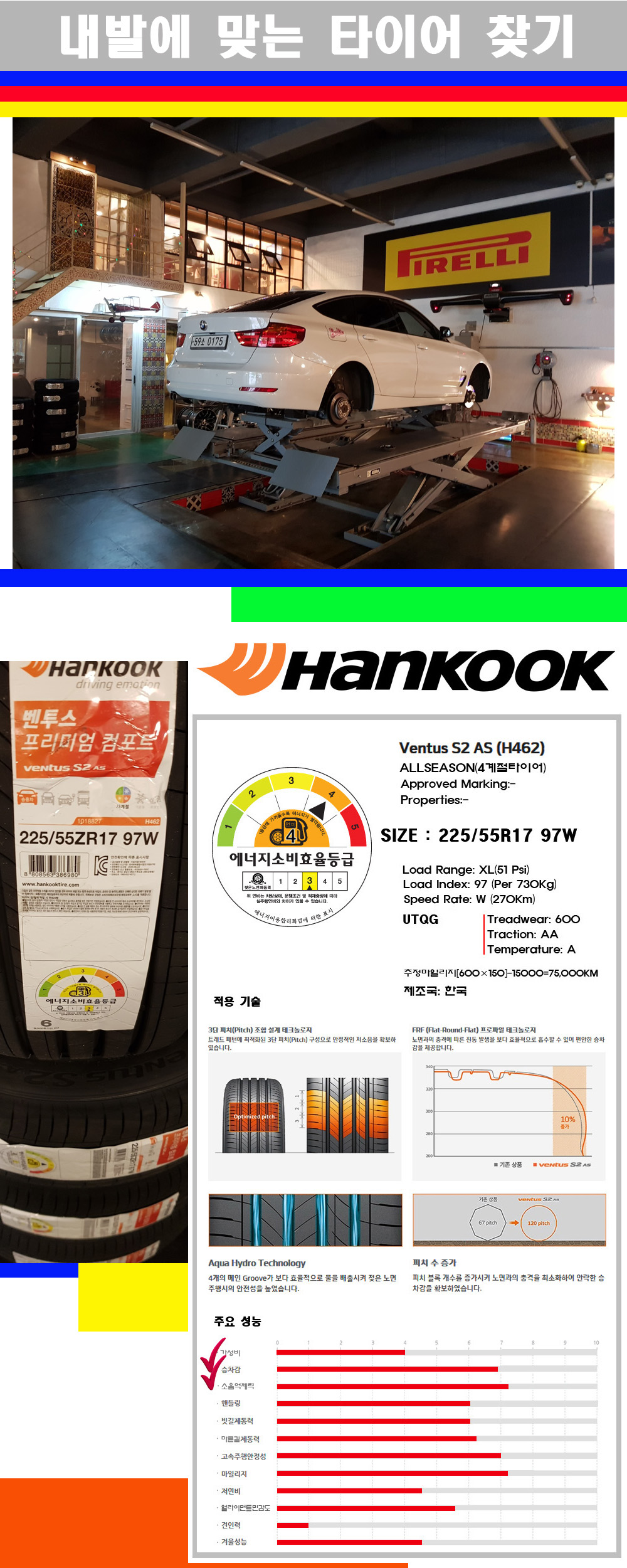 | [2255517]BMW3GT타이어 한국타이어 벤투스 S2AS 225/55R17 | |||