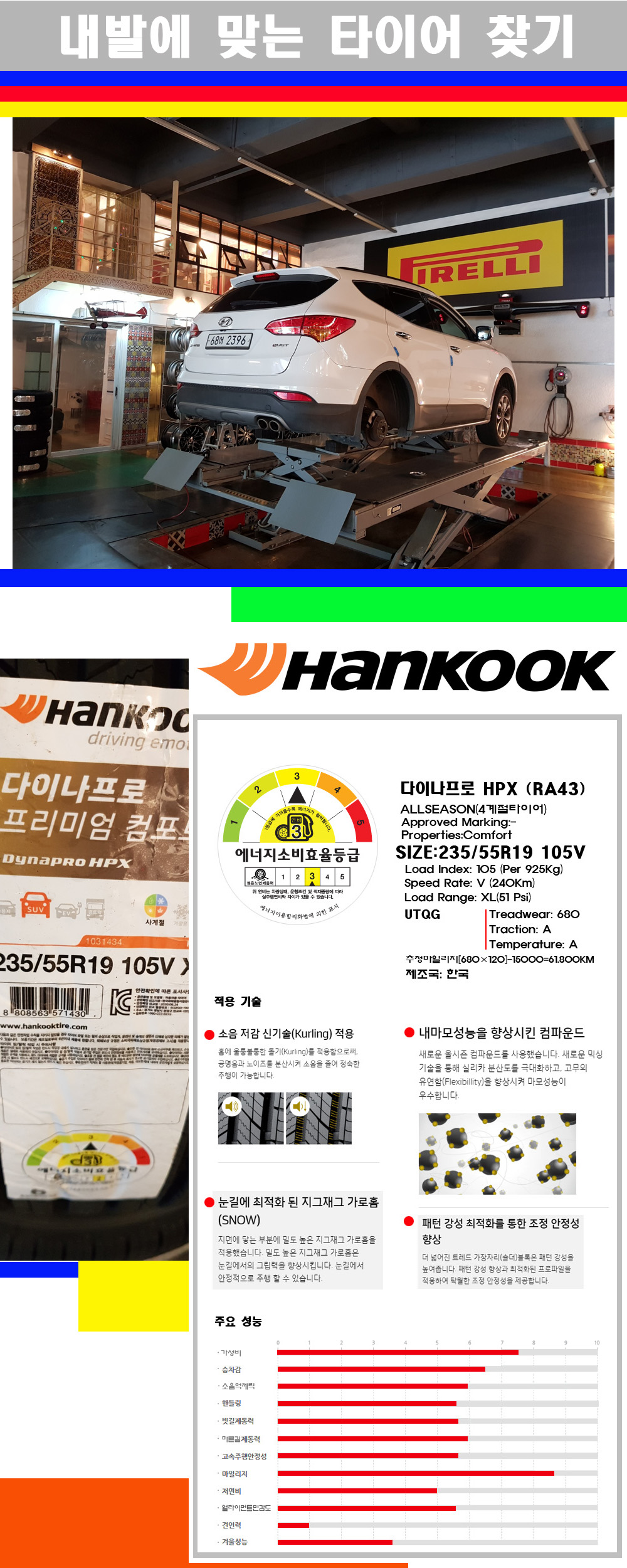 | [2355519]싼타페타이어 한국타이어 다이나프로 HPX 235/55R19 | |||