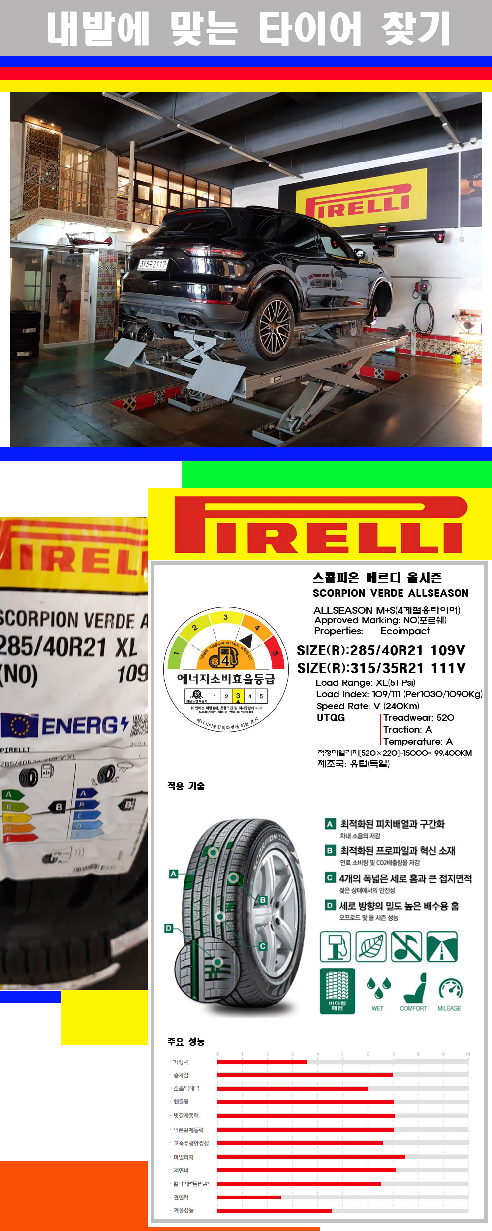 | 포르쉐 카이엔타이어/전국무료장착/60%할인행사중/대구포르쉐 카이엔타이어/[타이어플러스] 2854021 3153521 피렐리타이어 스콜피온 베르디 올시즌 F) 285 40 21 R) 315 35 21 | |||